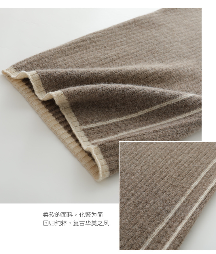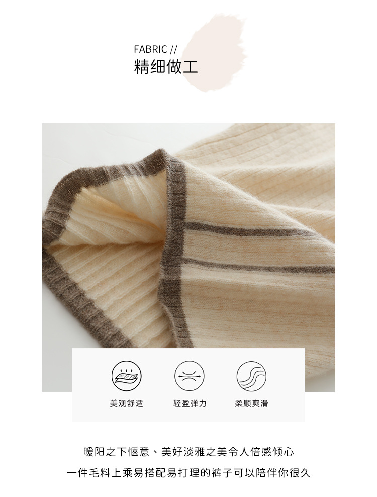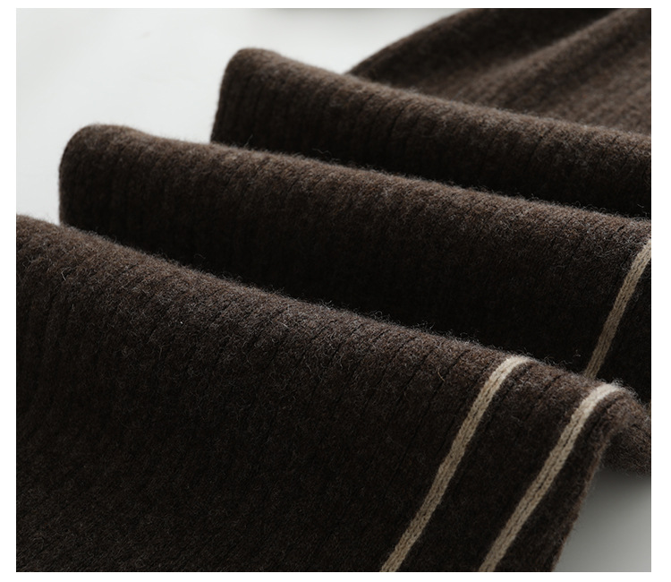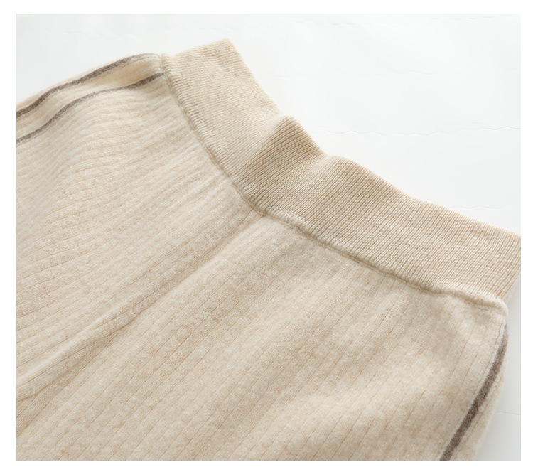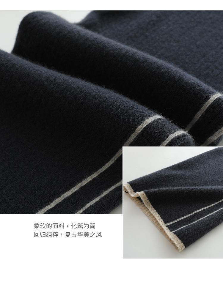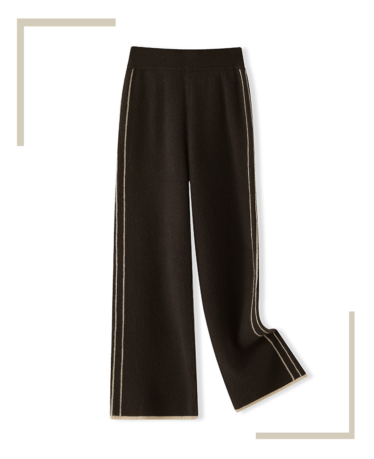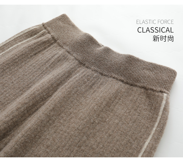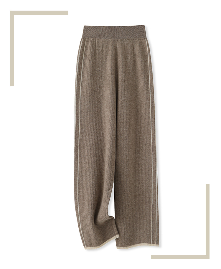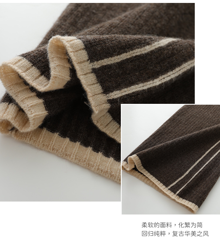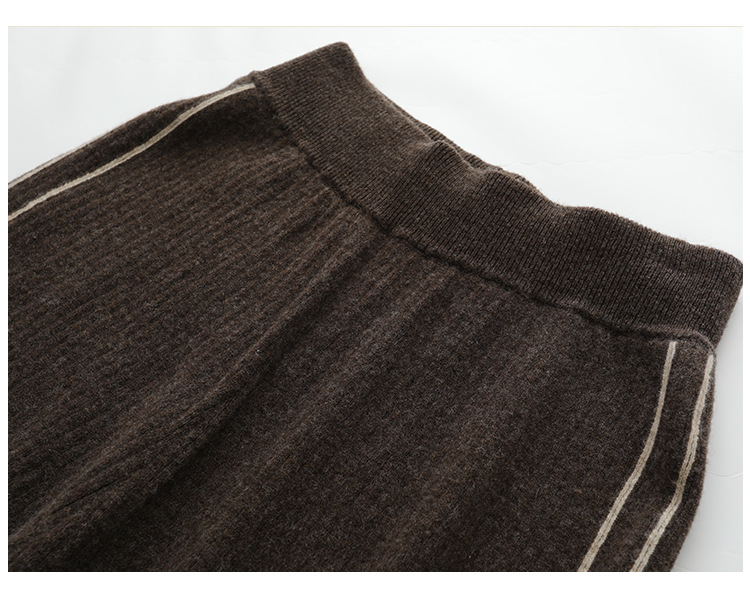 2023秋冬新作ウール厚手縦条ジャカード広腿ズボン直筒高腰垂感カシミヤニットズボン女