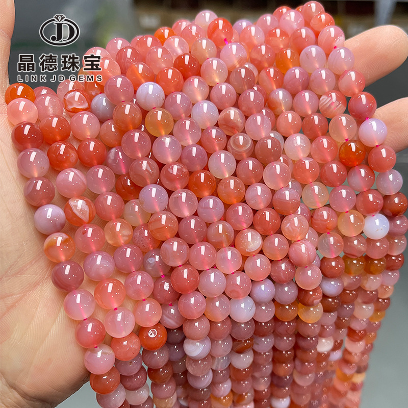結晶徳ジュエリー绯紅塩源瑪瑙玉グラデーションピンク瑪瑙散珠diyブレスレットアクセサリー卸売り