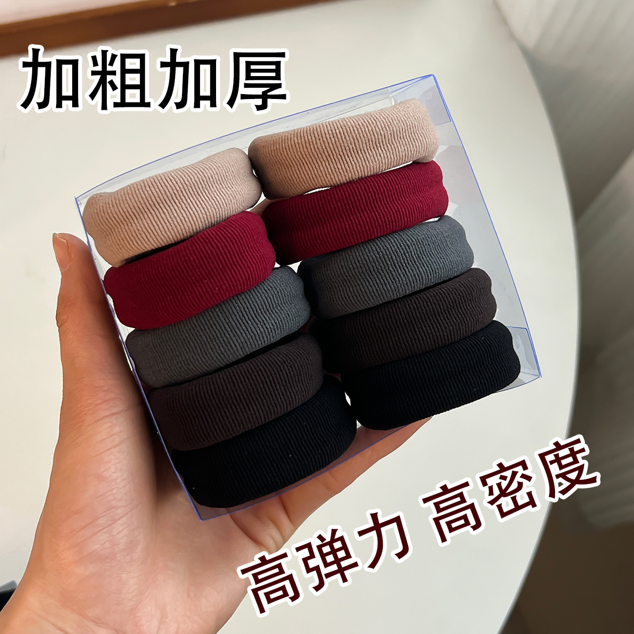 加粗毛巾圈高马尾丸子头绳无痕高弹力发圈无接缝头绳黑色耐用发饰