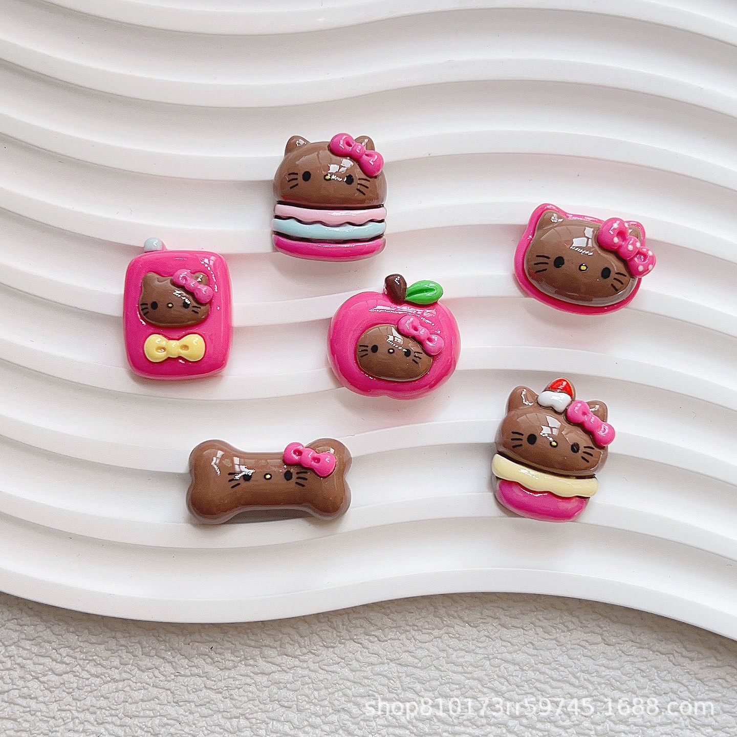 かわいい漫画の子猫のドーナツdiyの手作りのクリームのキーホルダーのヘアピンの冷蔵庫は樹脂のアクセサリーの部品を貼ります。