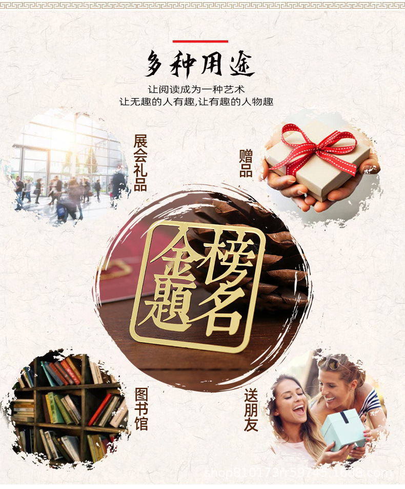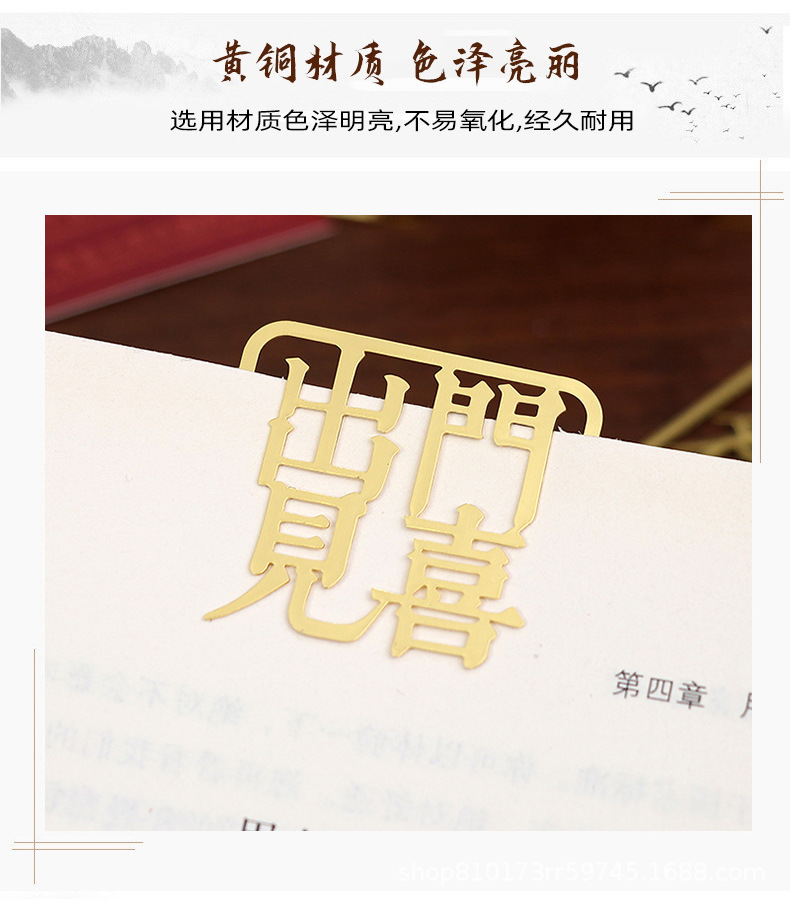祝福语金属书签镂空电脑片金榜题名书签夹页国潮文创黄铜书签批发