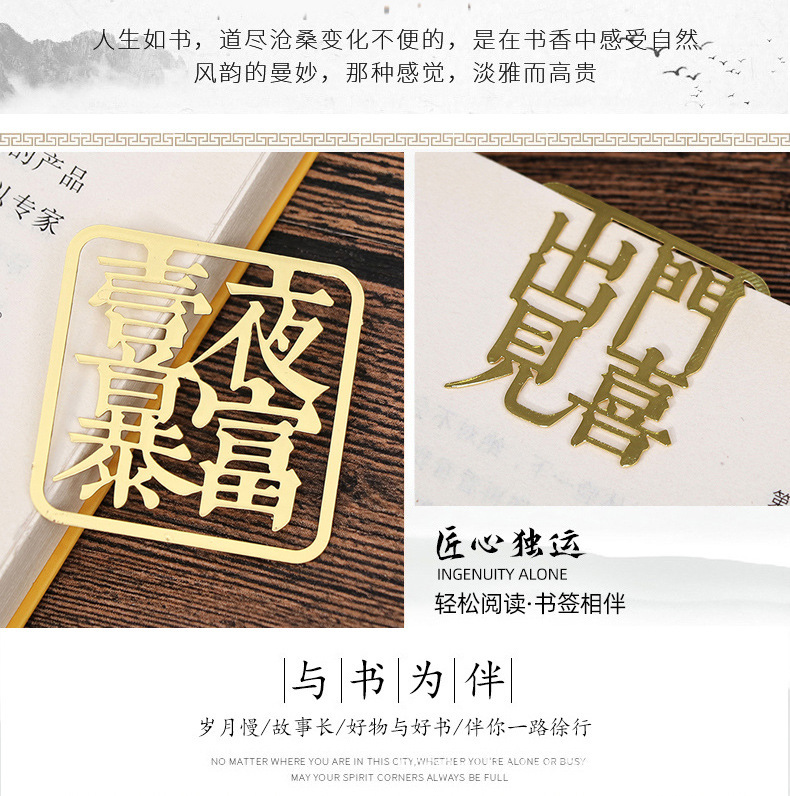 文创中国风文字书扣新年礼物教师节学生毕业纪念礼品金属书签定制