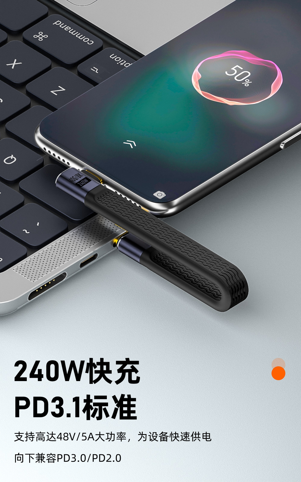 240w軟板線TYPE-C公転TYPE-C公40gbps中曲は雷4全機能データ線をサポートします。