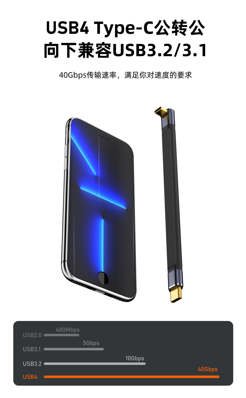 雷4データケーブルに適したfpcシリコンtype-c公転母は40gbps全機能短い線240wをサポートしている