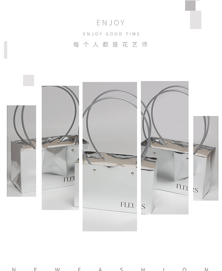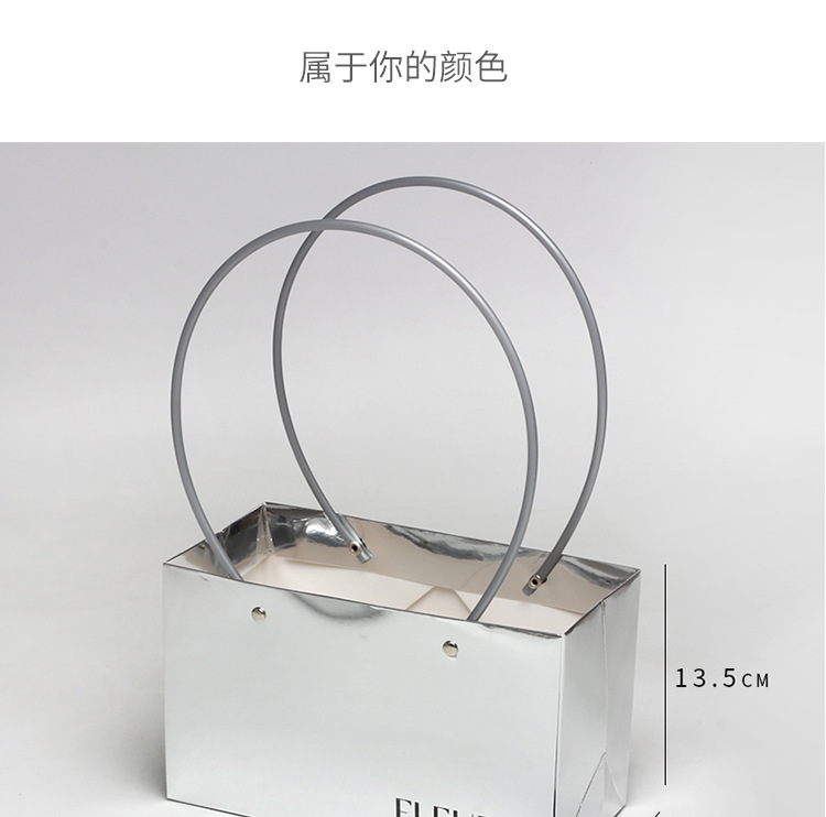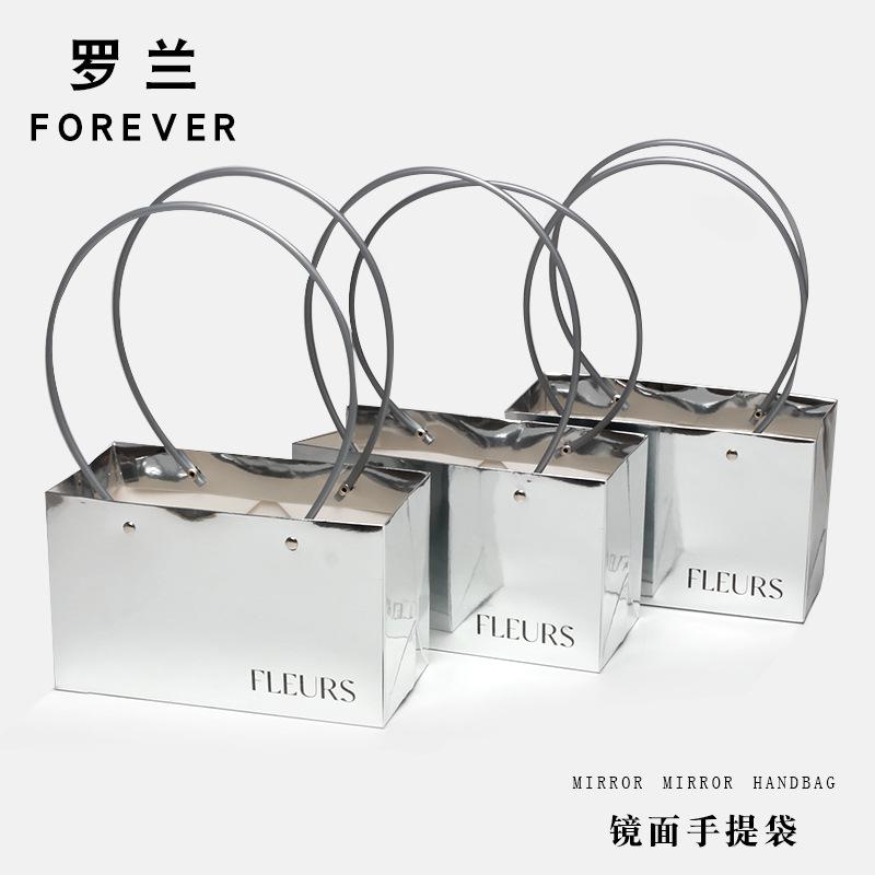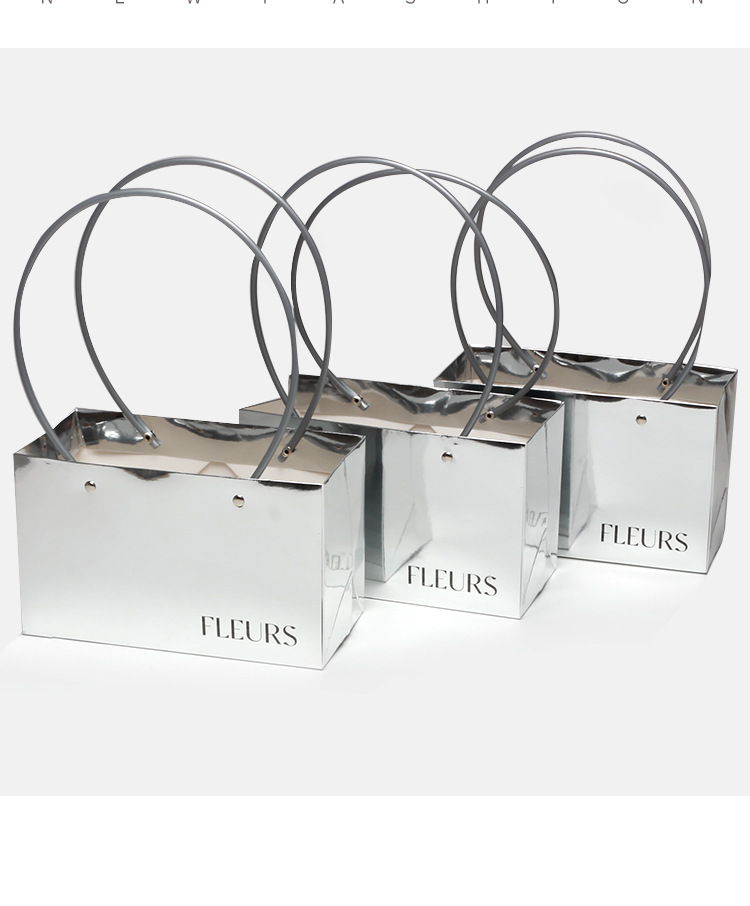 新しい鏡面銀色花包装手提げ袋卸売り花束包装材料長方形クラフト紙ギフトバッグ
