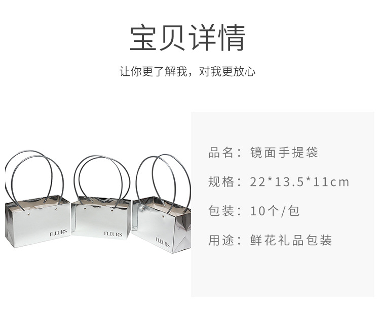 加厚银色宝宝生日宴伴手礼喜糖盒鲜花手拎袋情人节花艺包装袋花束