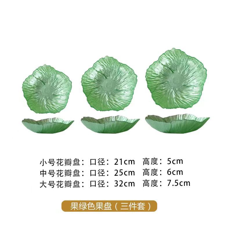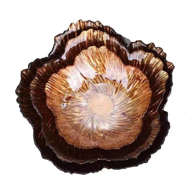 クローバー花びら皿和風ハンマー金辺ガラスボウル家庭用食器insクリエイティブサラダボウル果物皿セット