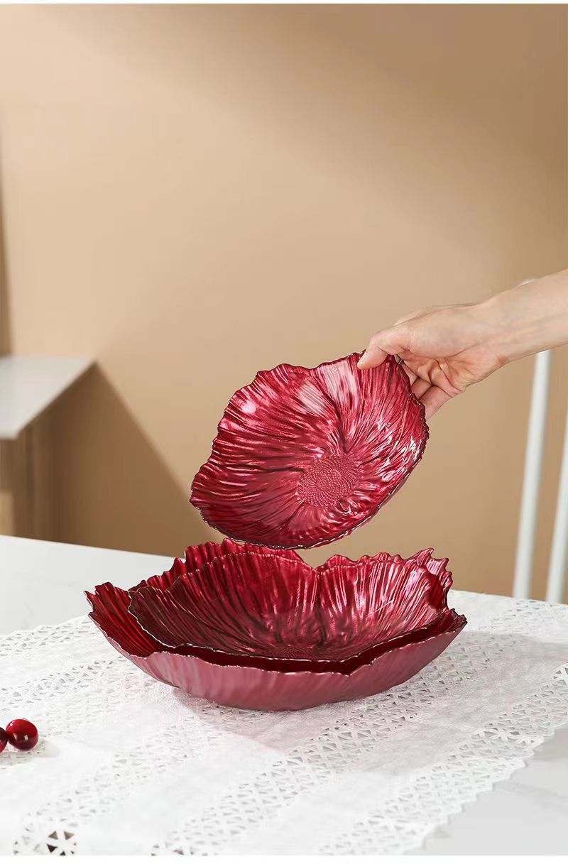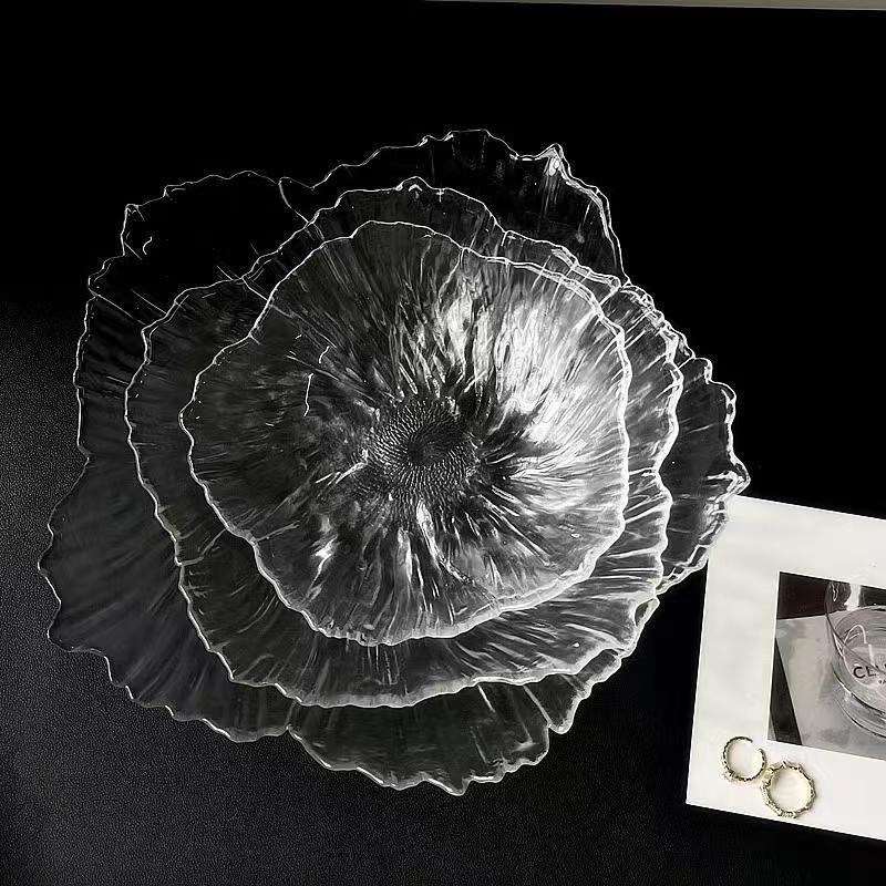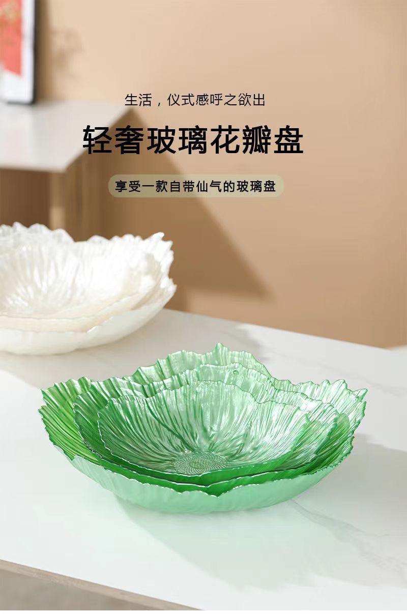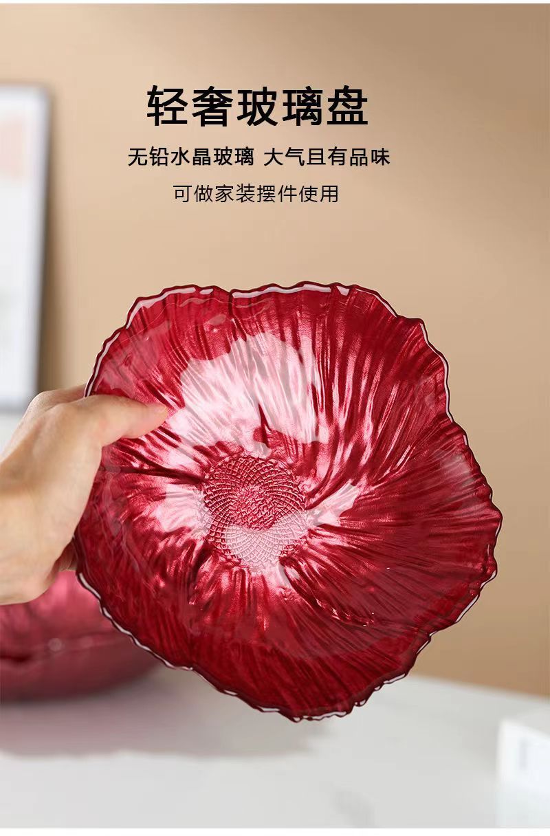 北欧の軽い豪華な果物皿家庭用リビングルーム水晶ガラス花型収納皿