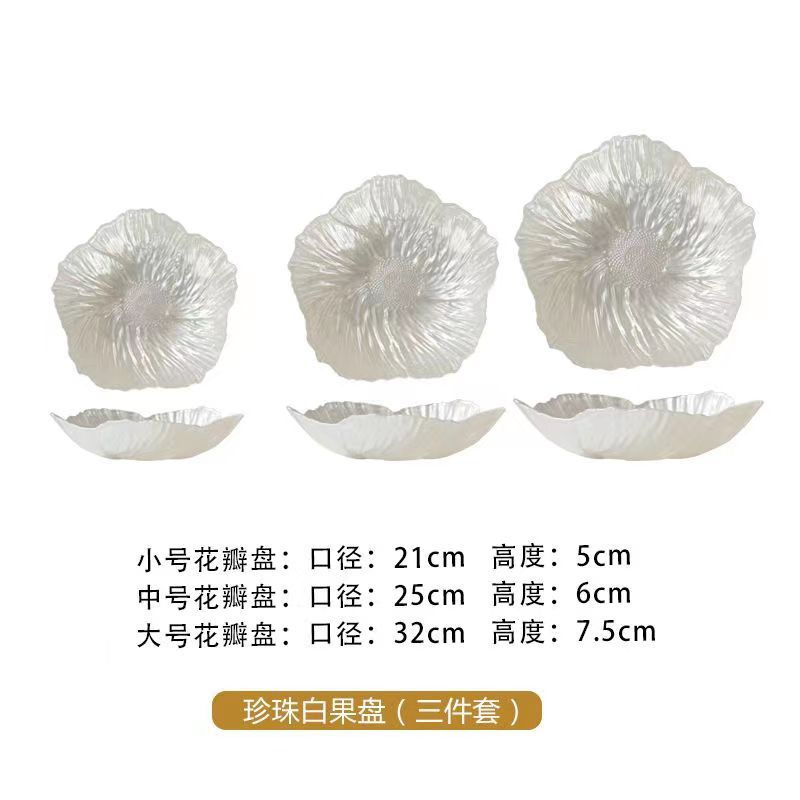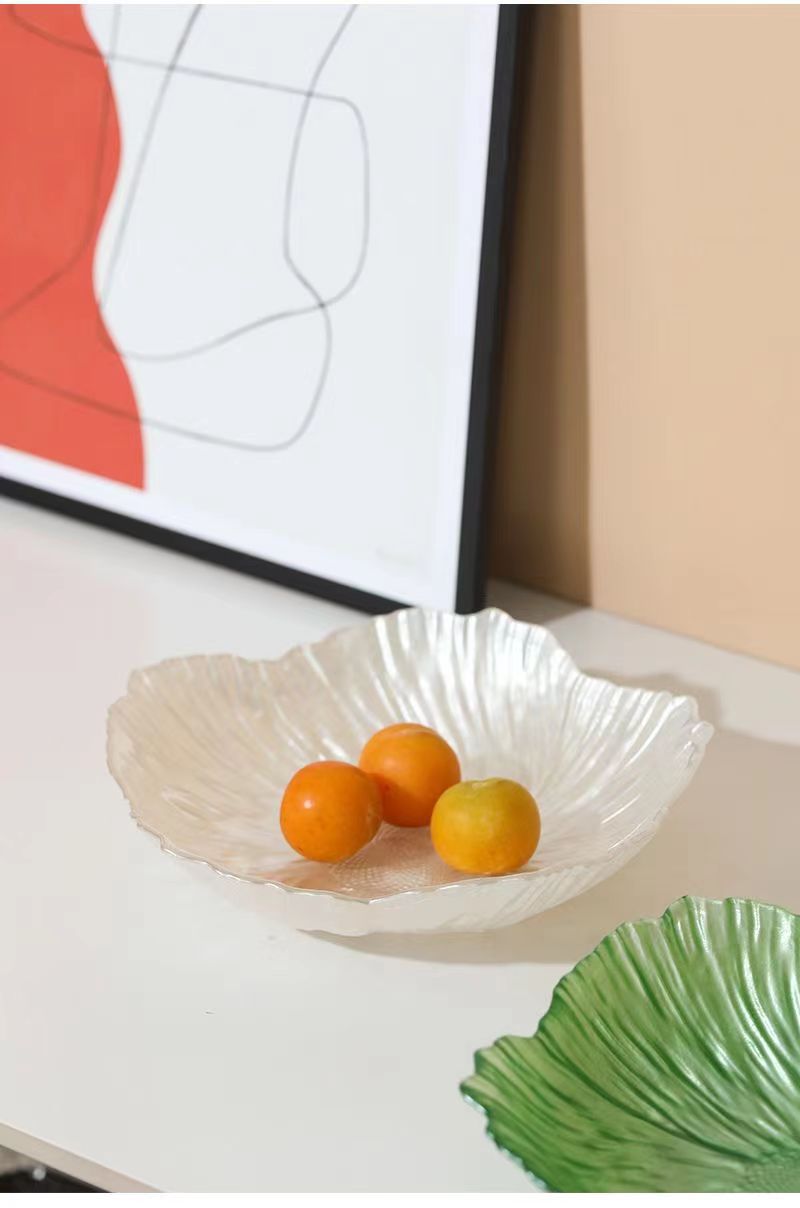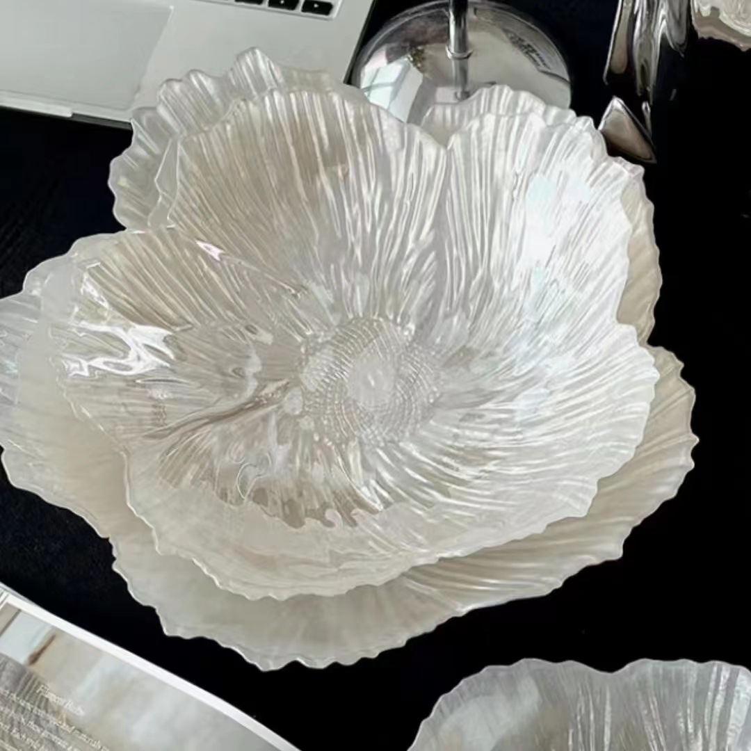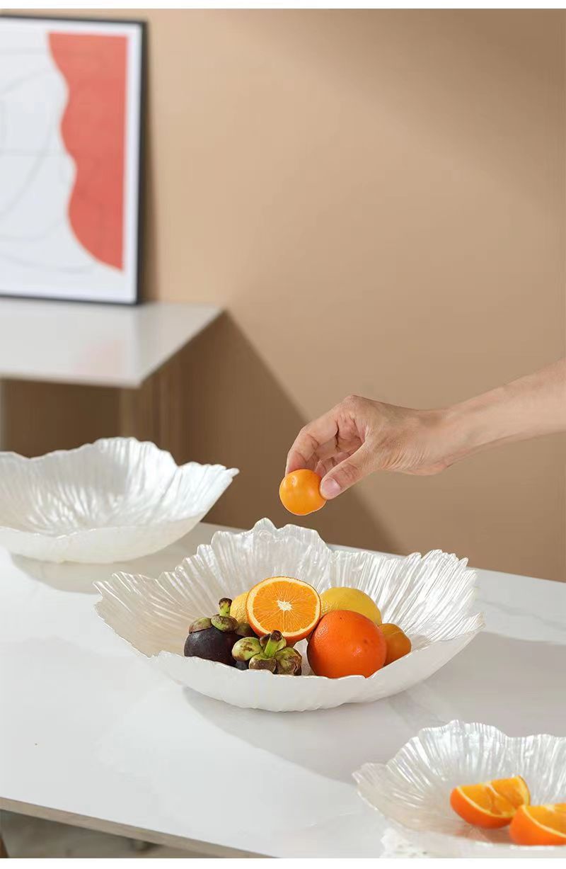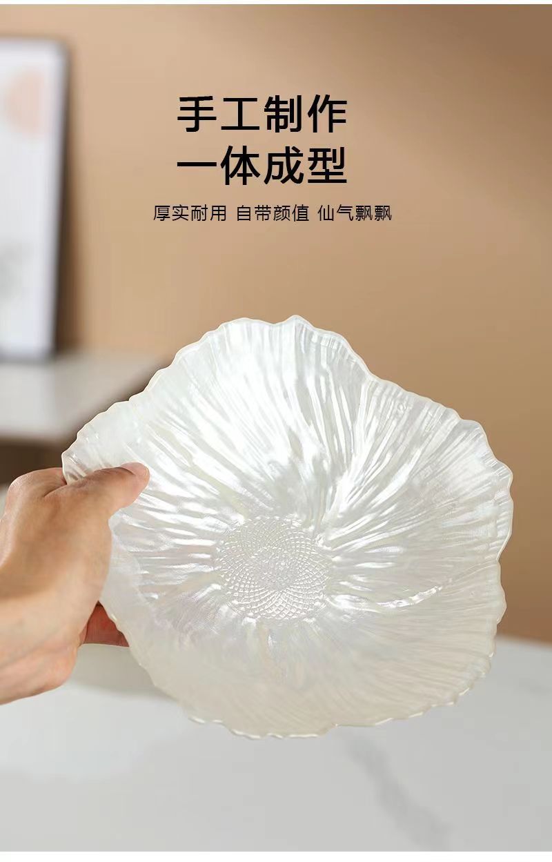 ヨーロピアンフラワークリスタルガラスフルーツプレートホームスナックキャンディプレート真珠光沢のある白の高価値ドライフルーツプレートスナックプレート