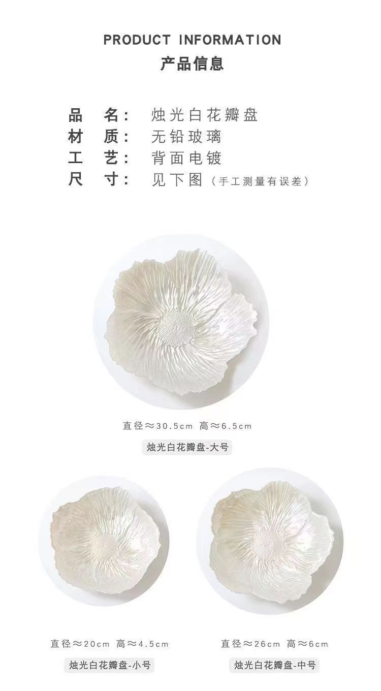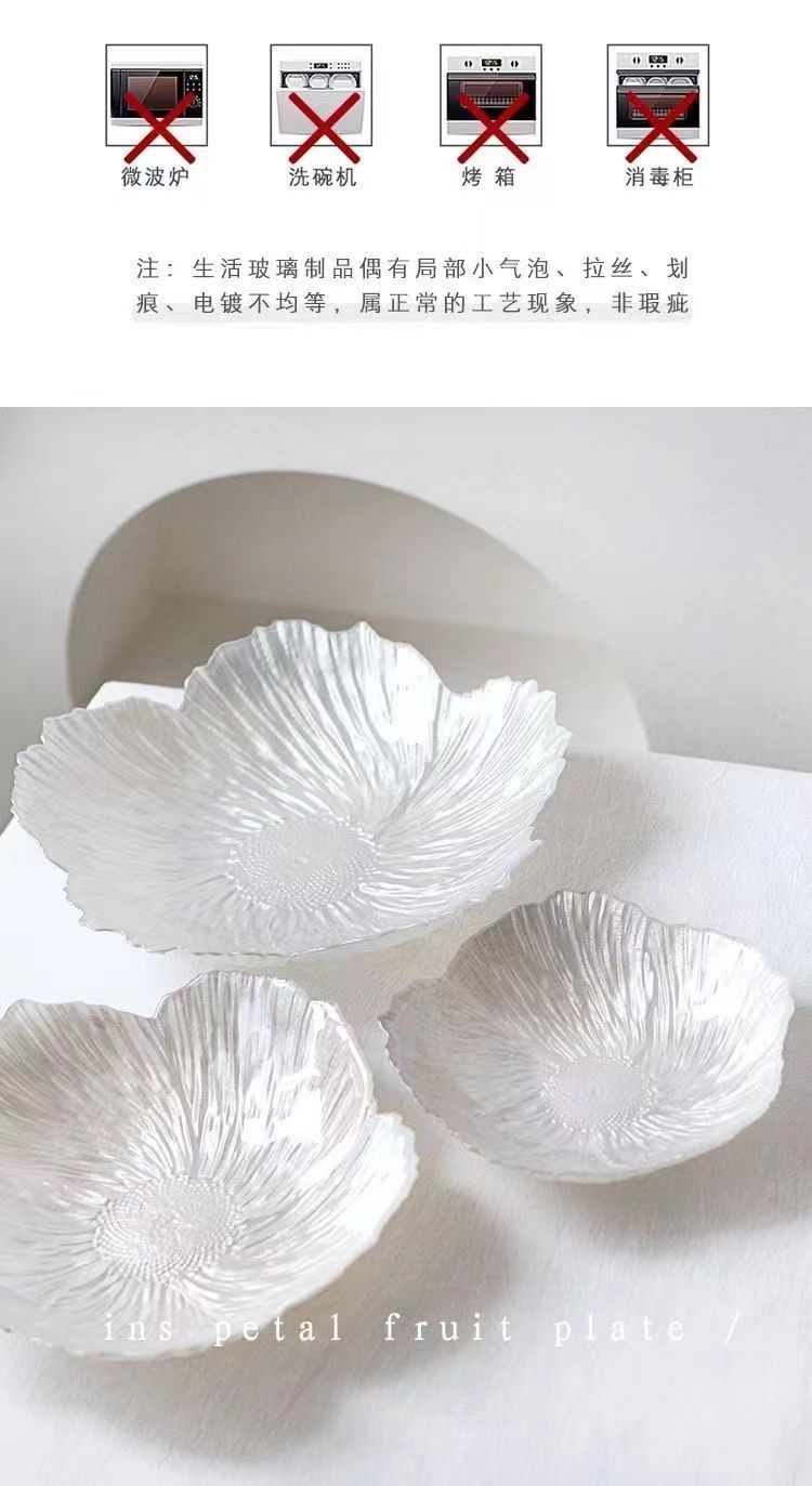 欧式花朵水晶玻璃水果盘家用零食糖果盘珠光白前台盘过年用水果盘