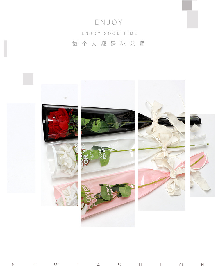 バラの花束OPP単枝袋枠英語透明袋花包装材料花屋資材装飾袋