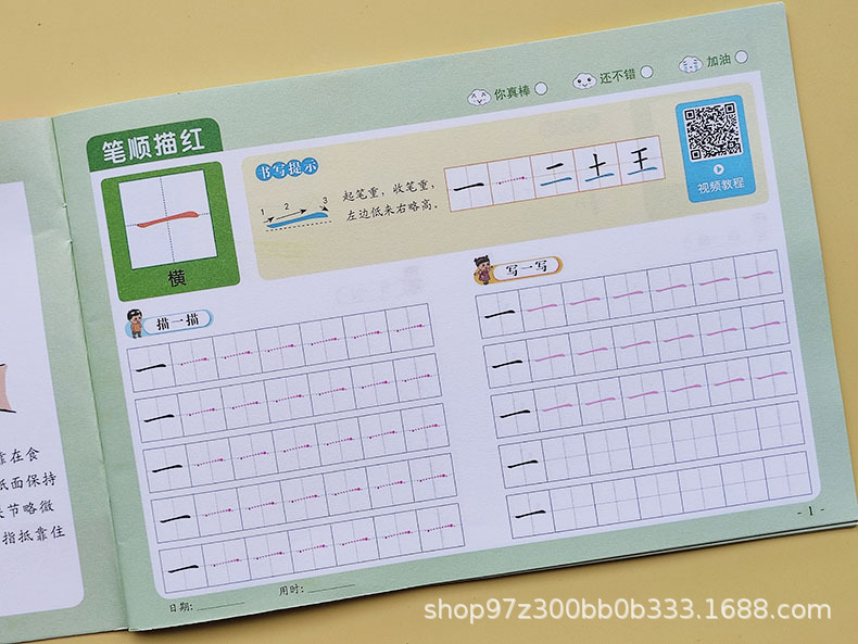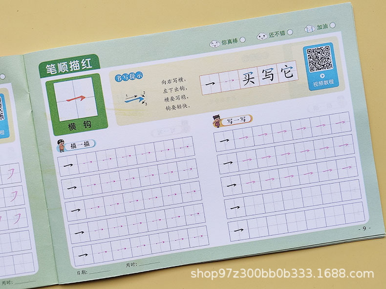 児童控筆練習点陣描紅本学前1200字8冊入学前漢字描紅幼児練字帖