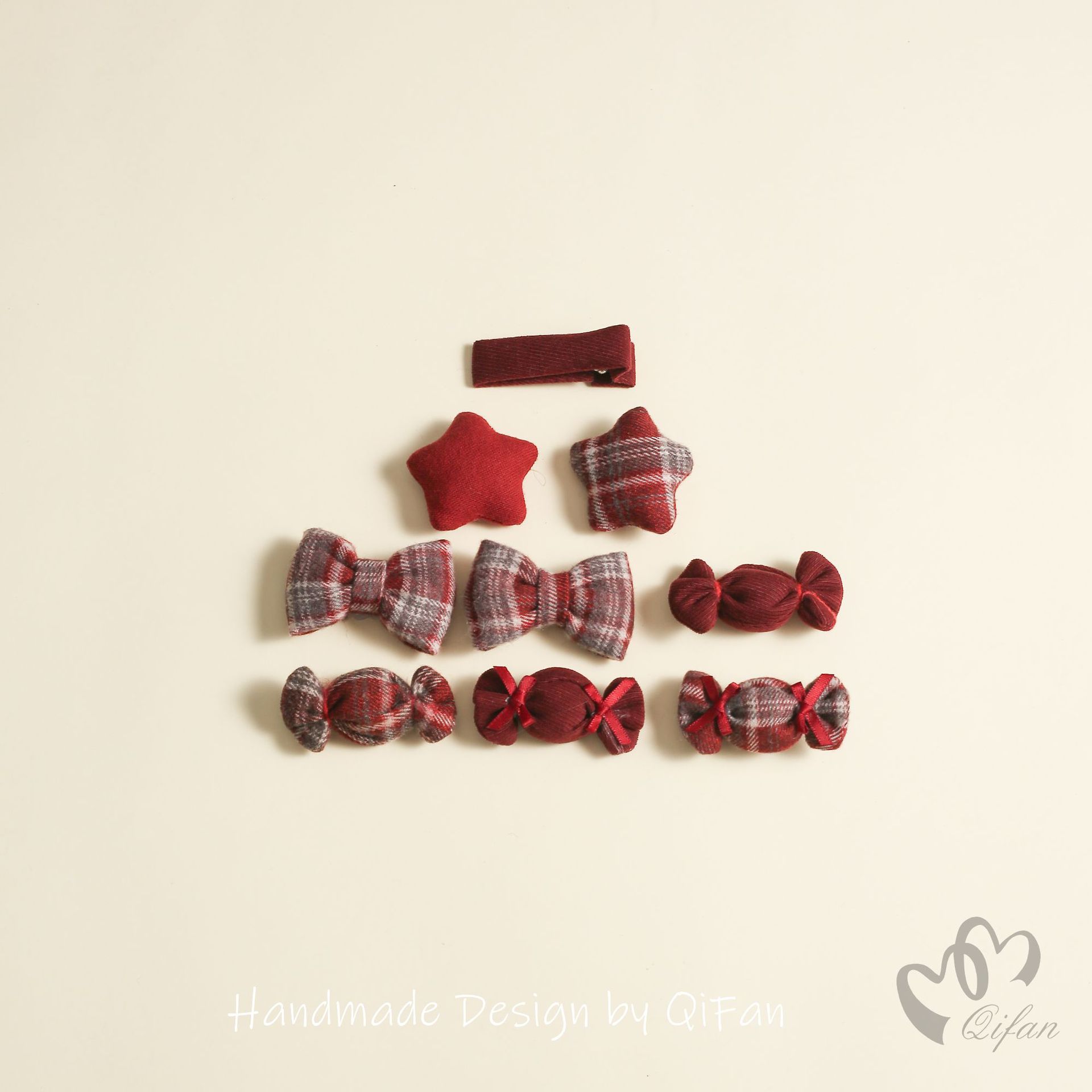 棉毛苏格灰红色系糖果五角星蝴蝶结布艺韩系发饰发夹配件服装辅料