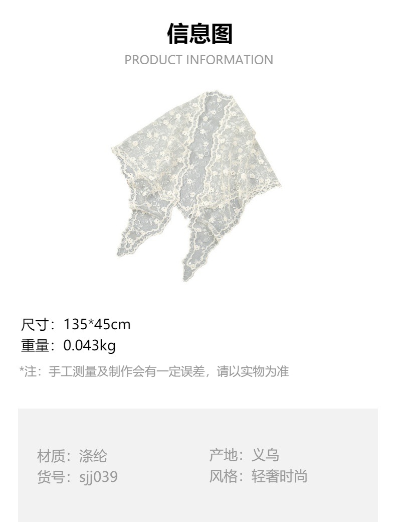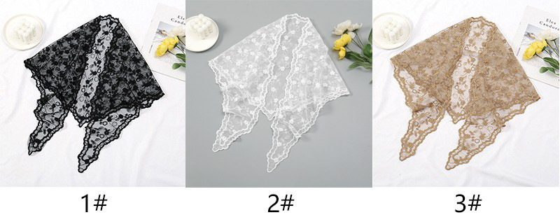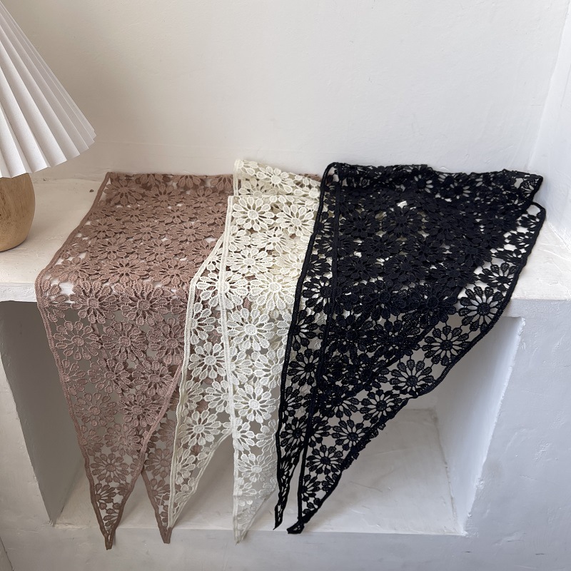ホット販売レース中空無地レディース三角スカーフ韓国版モノクロ通気性アパレル三角スカーフ SJJ001