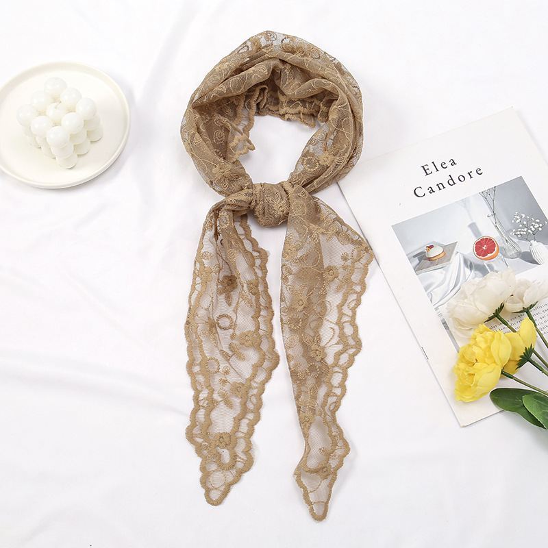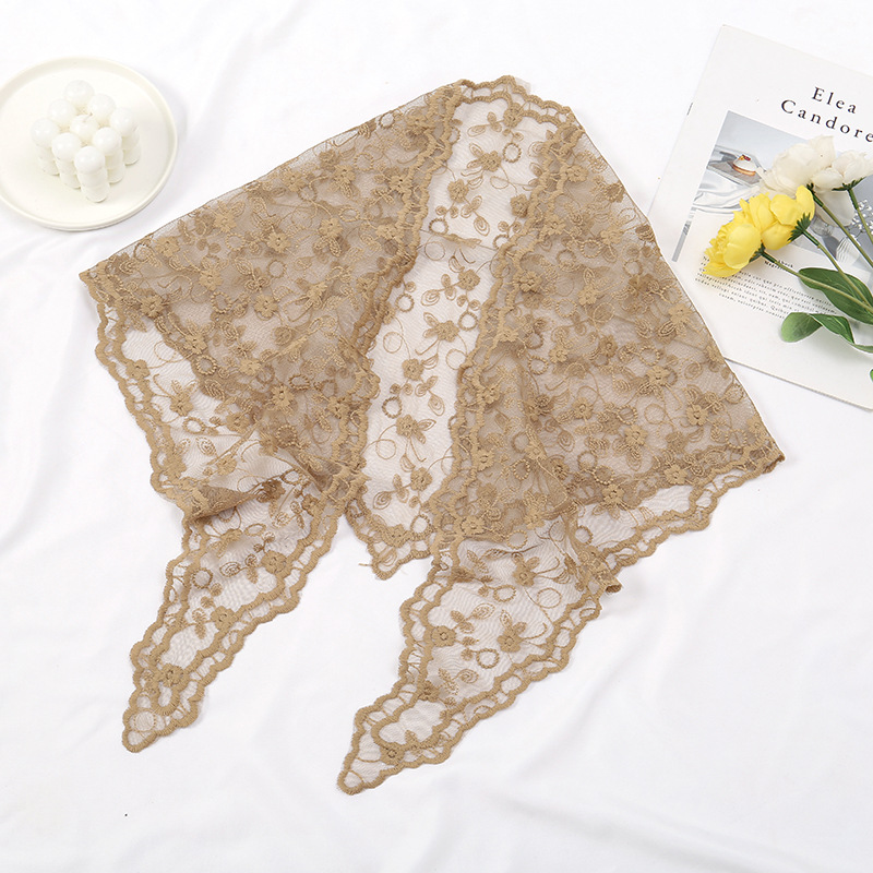 レースの花の三角のスカーフの女性の春と秋の薄いタイプのフランスの頭の糸の包みのスカーフの洋風の装飾は写真を撮ります。