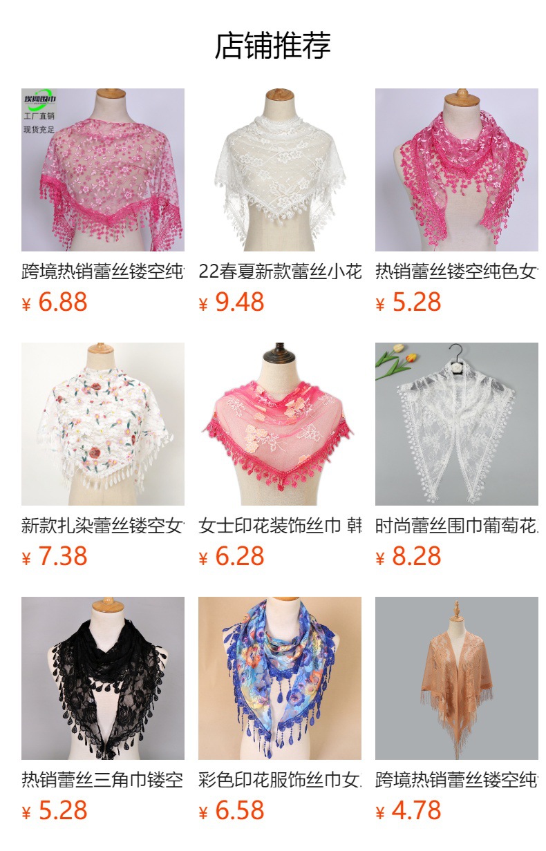 春の新型人気レース純色三角タオル街頭ファッション百合透かし彫り女性花三角マフラー