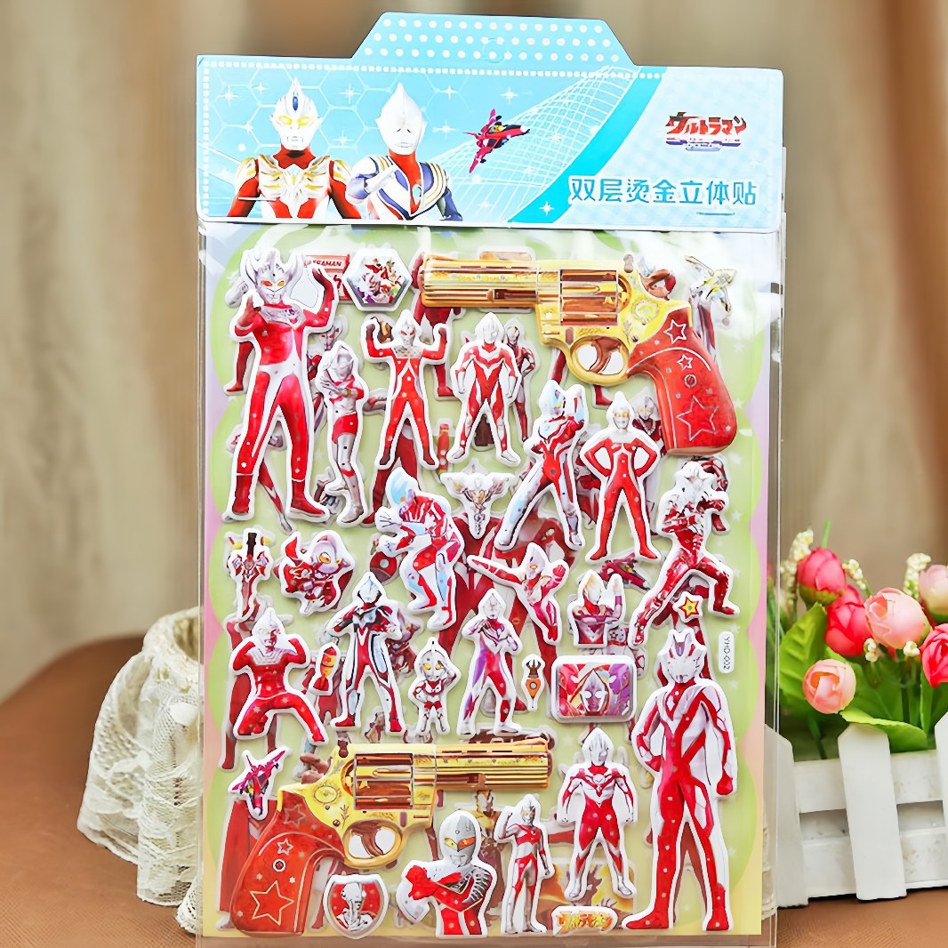 ビッグ張ウルトラマン子供漫画バブル男の子立体奨励シール玩具貼り付け二重スーパーマンステッカー