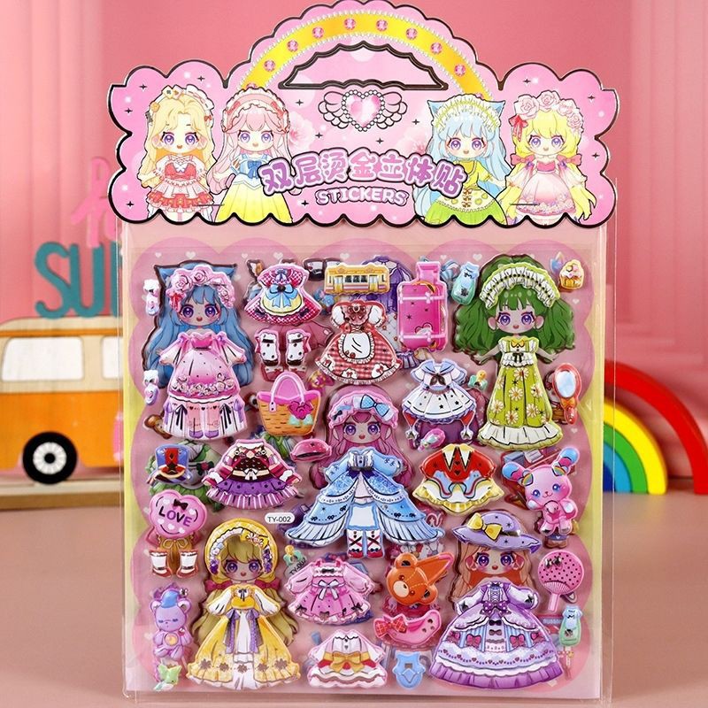 儿童立体卡通贴纸双层烫金公主换装女孩穿衣服装扮贴画国潮泡泡贴