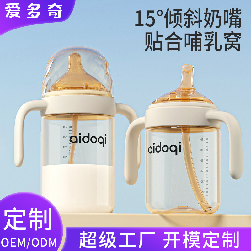 宽口径PPSU奶瓶大宝宝吸管奶瓶学饮鸭嘴杯喝奶喝水杯防胀气奶瓶