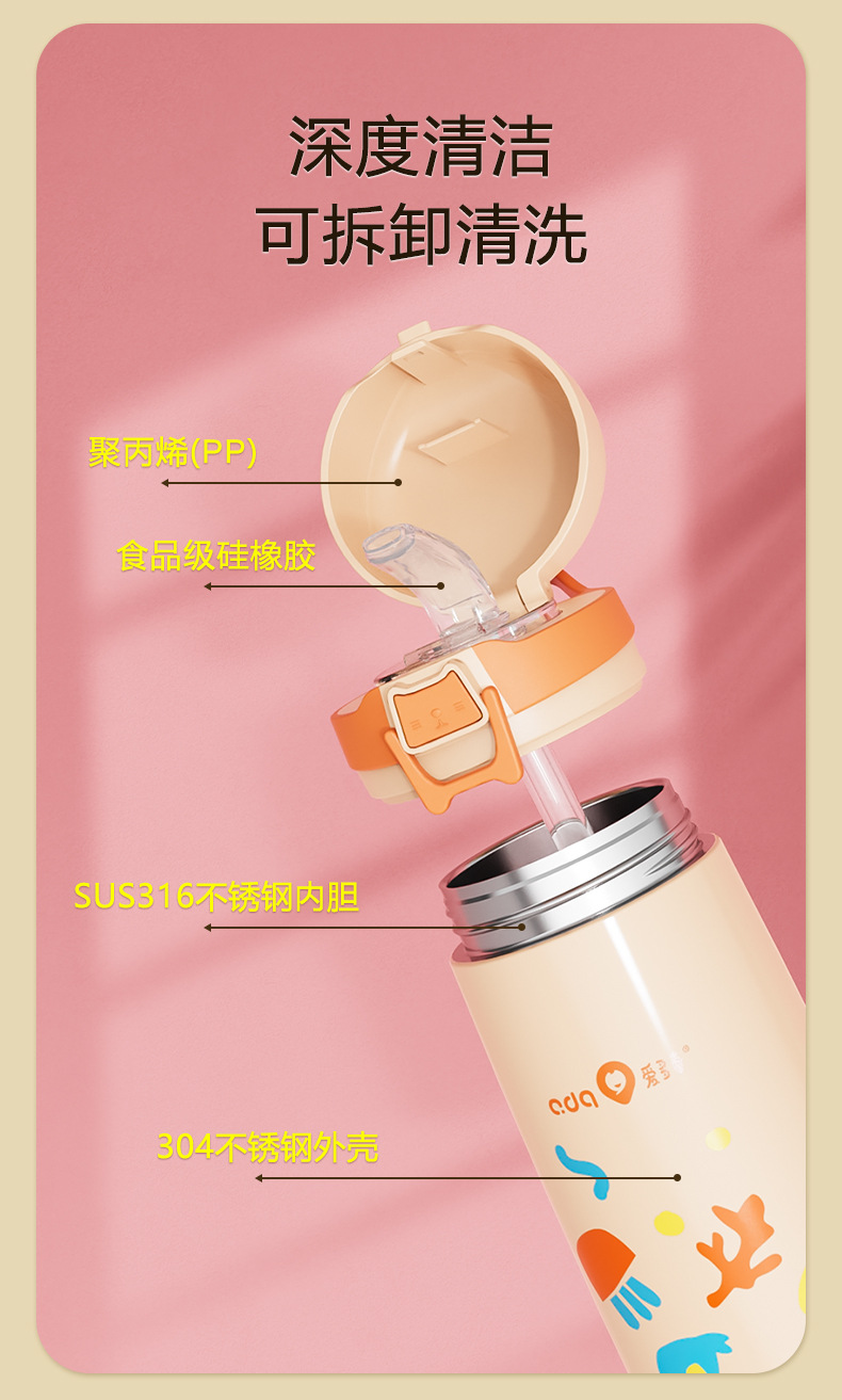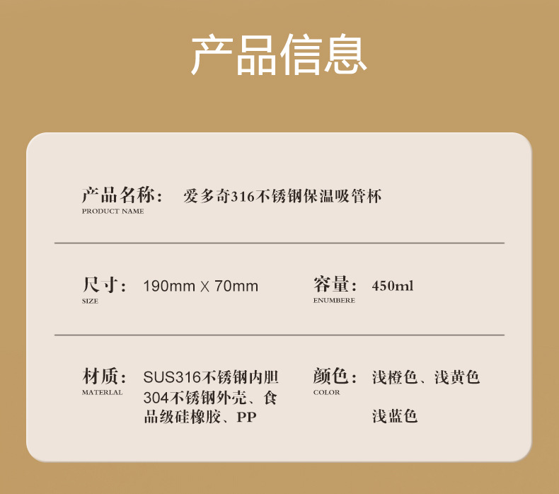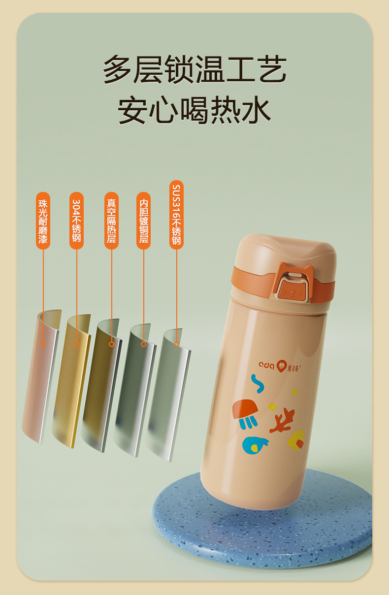 愛多奇ストロー保温カップ女性携帯妊婦産婦316ステンレスカップシンプル学生カップ
