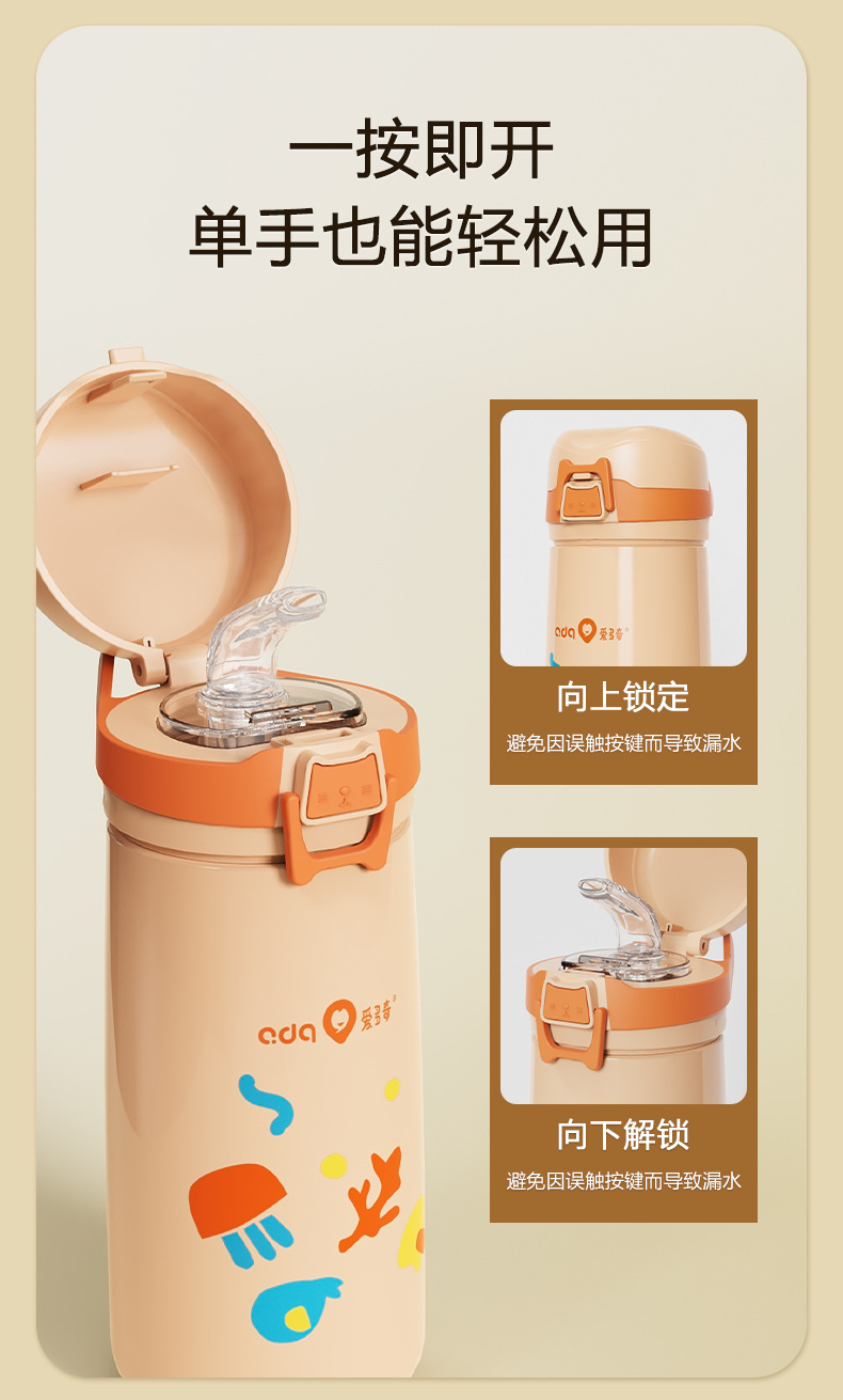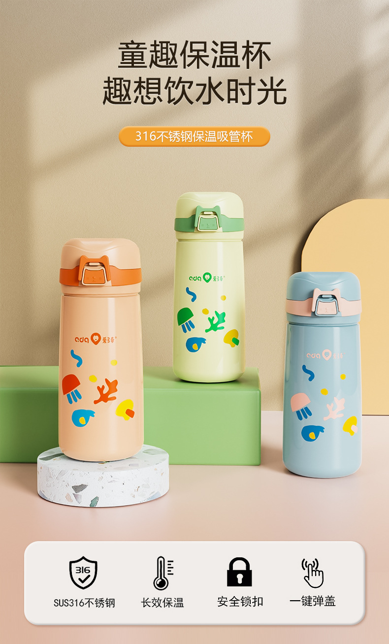 愛多奇児童保温カップ赤ちゃんストローカップ幼稚園ストロー学飲カップ学生直飲カップステンレスカップ