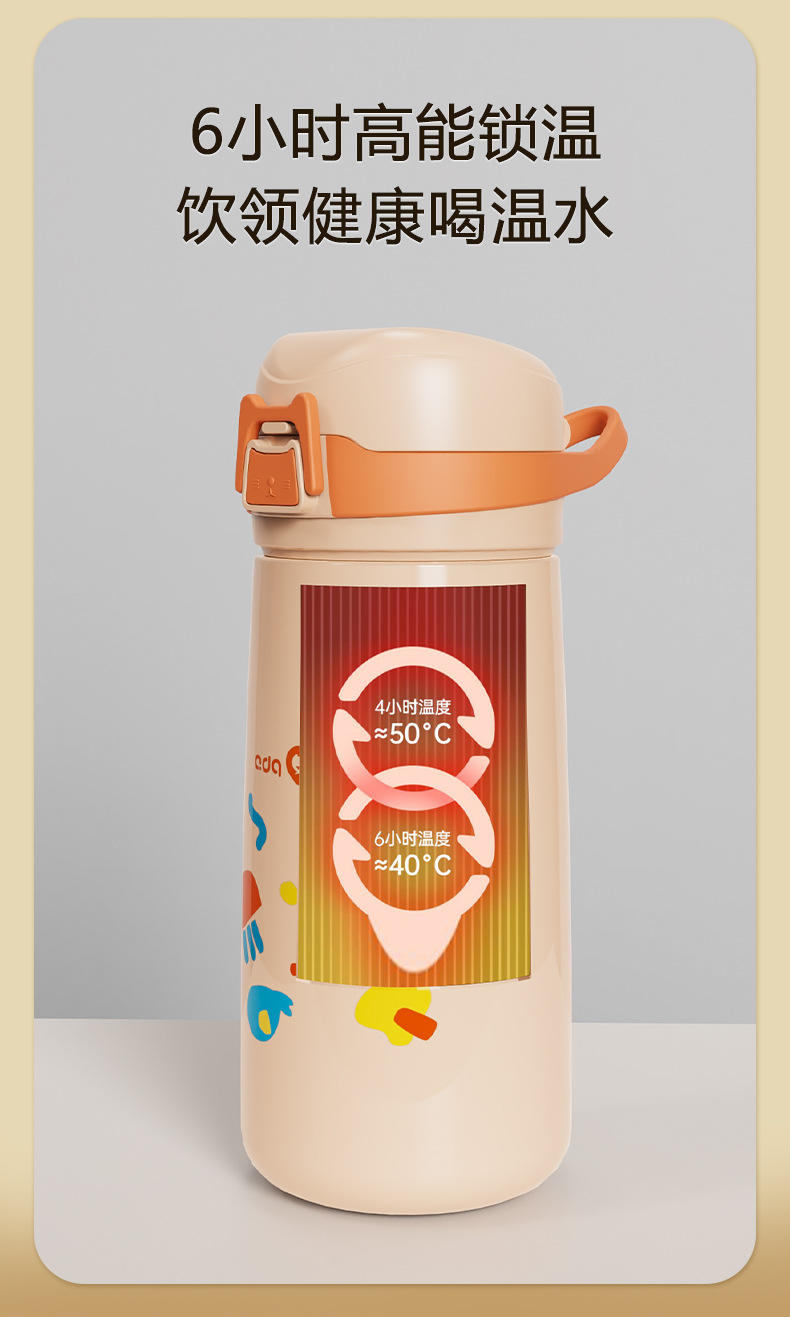 愛多奇児童保温カップ316ステンレス知能温度表示ストローカップ大宝大容量カップ