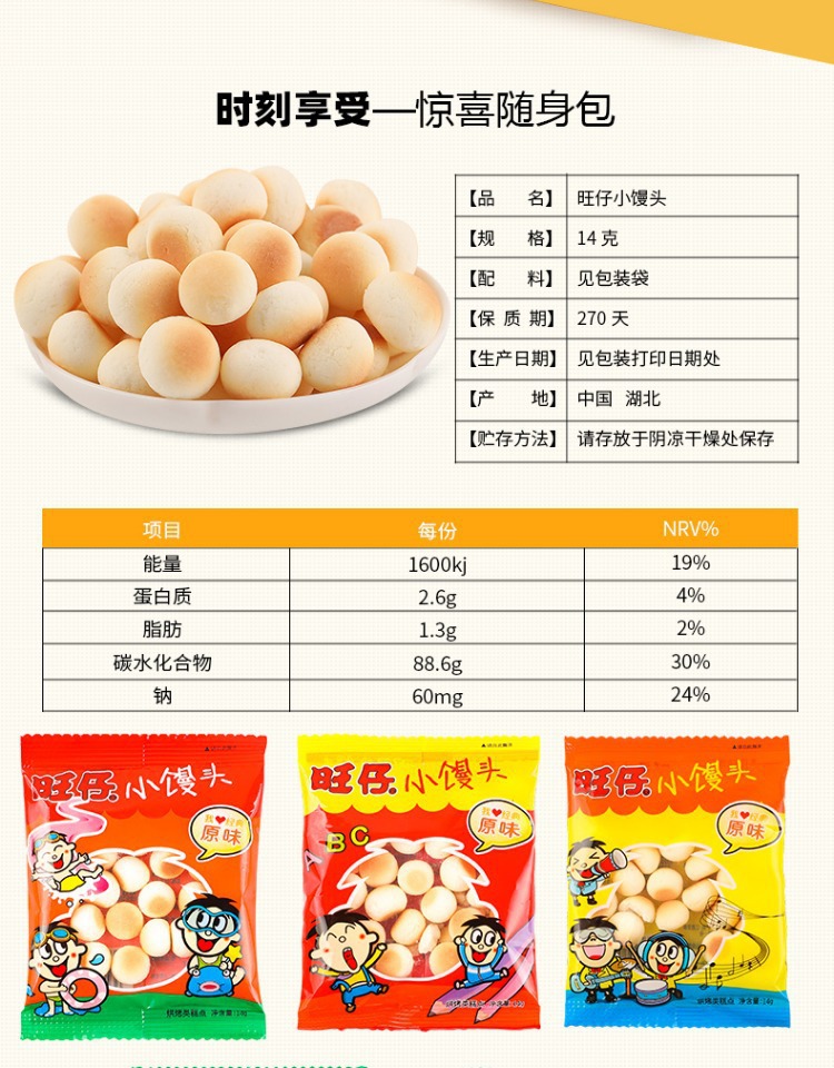旺旺旺仔小饅頭原味14g小袋入り小溶豆乳幼児間食レジャー食品卸売り購入