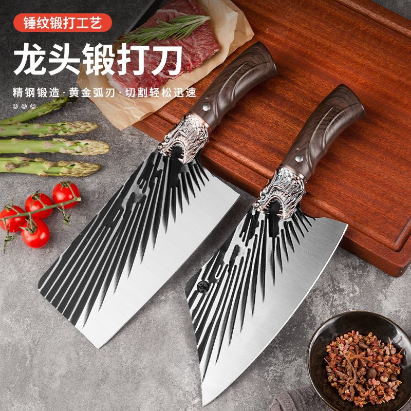 陽江メーカーのステンレス鋼鍛造ハンマーパターン家庭用包丁、鶏肉、アヒル、豚バラ肉を切るための鋭い多機能ナイフ
