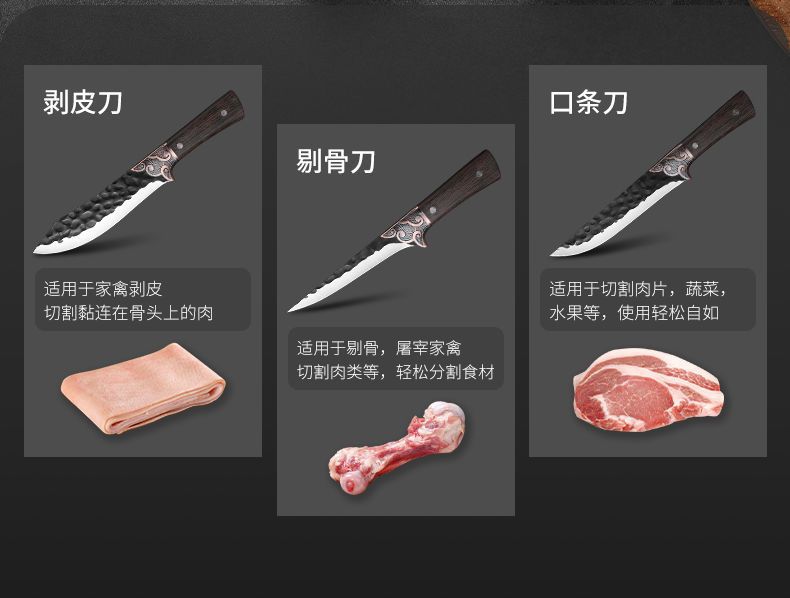 锻打切肉刀家用剔骨刀分割肉刀手把肉用刀吃羊排牛排餐刀切水果刀