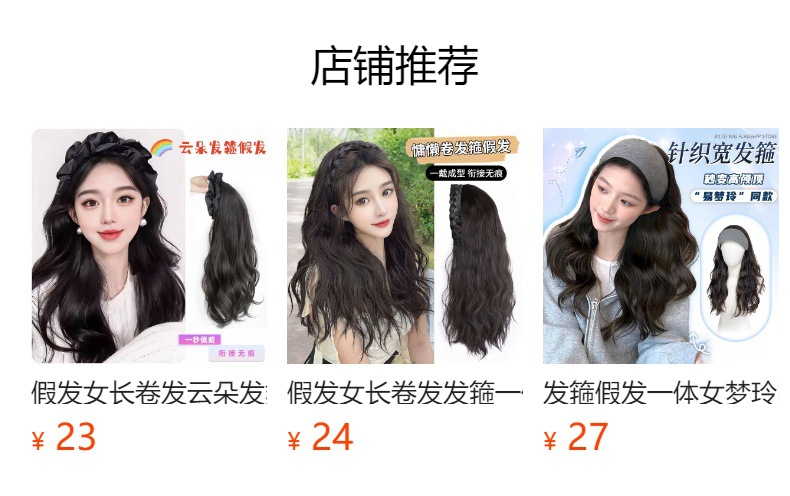 厂家现货美拉德发箍假发一体女长卷发高颅顶接发片自然仿真半头套