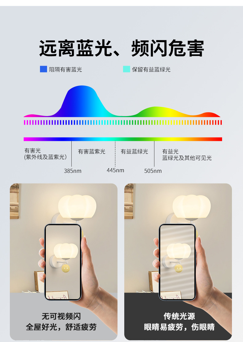 Daguan Yuan 寝室の壁ランプクリームスタイルのベッドサイドランプ子供部屋の背景壁雰囲気ランプ蘭装飾ランプ L271