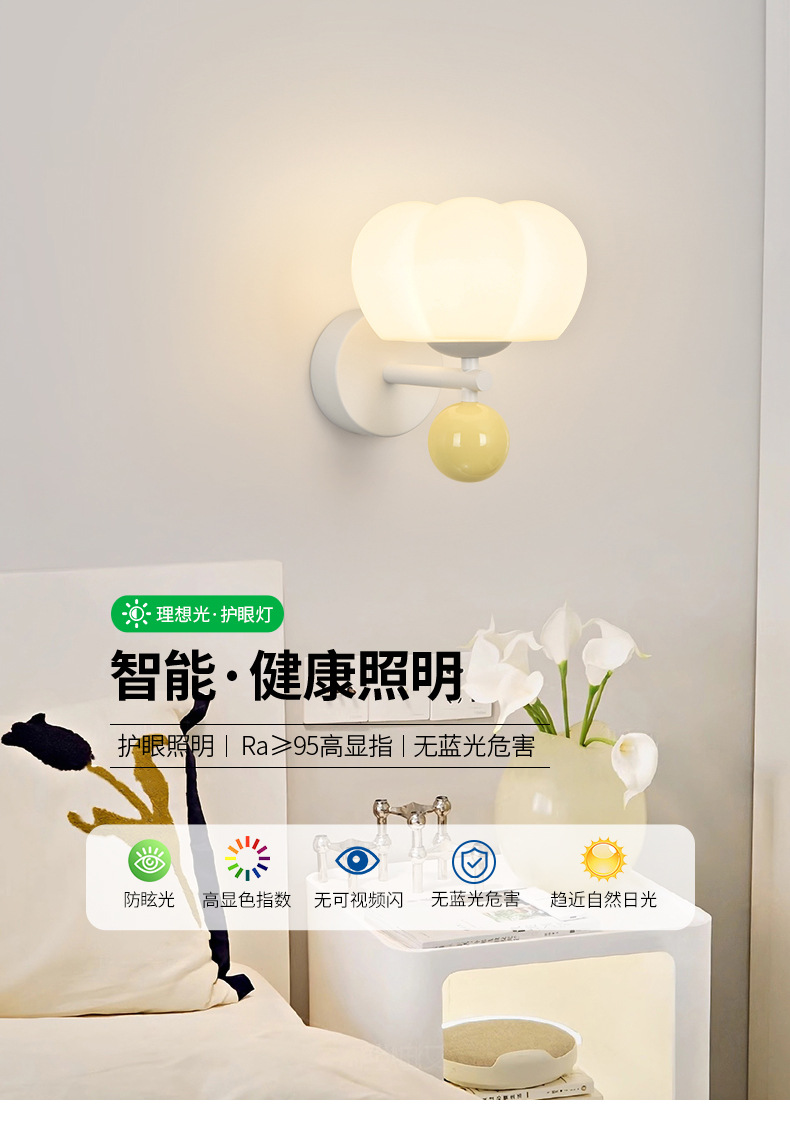 大観園寝室ベッドサイドランプ北欧モダンシンプルリビングルーム背景壁照明クリーム風廊下壁ランプL271