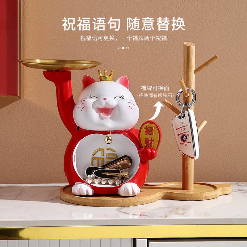 新居に引っ越してプレゼントします。招き猫は玄関のテレビの棚を収納します。