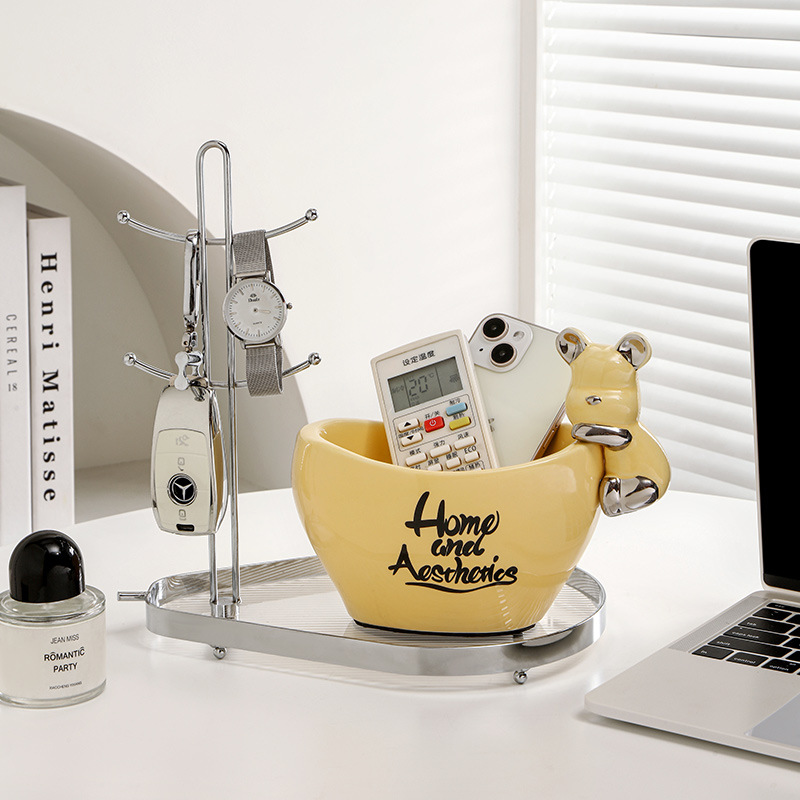 暴力熊収納置物玄関玄関鍵トレーキャンディー皿北欧風個性家庭装飾品