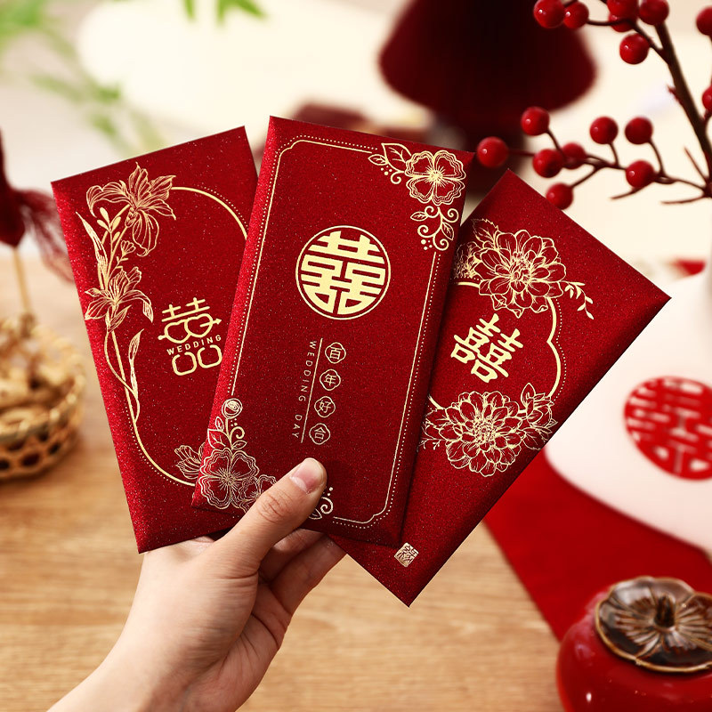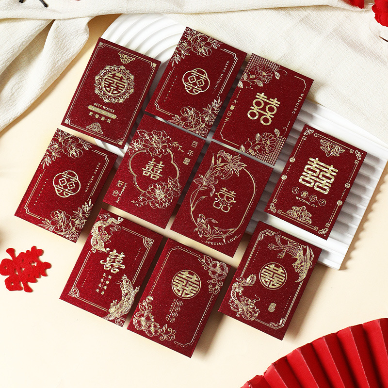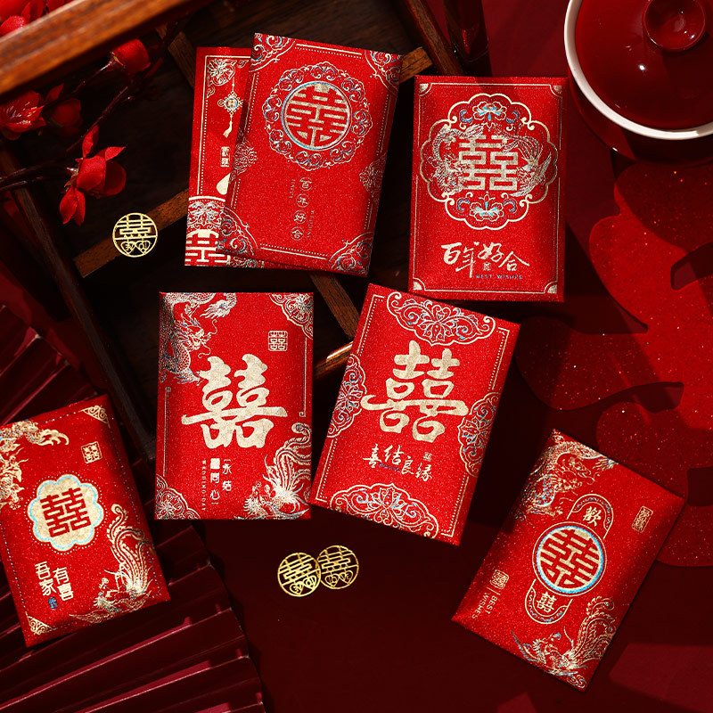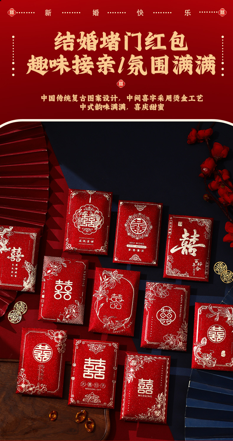 2025 新しい結婚式のミニ赤い封筒小さなハッピーワードドアブロック小さな赤い封筒結婚式の赤い封筒バッグ結婚式用品