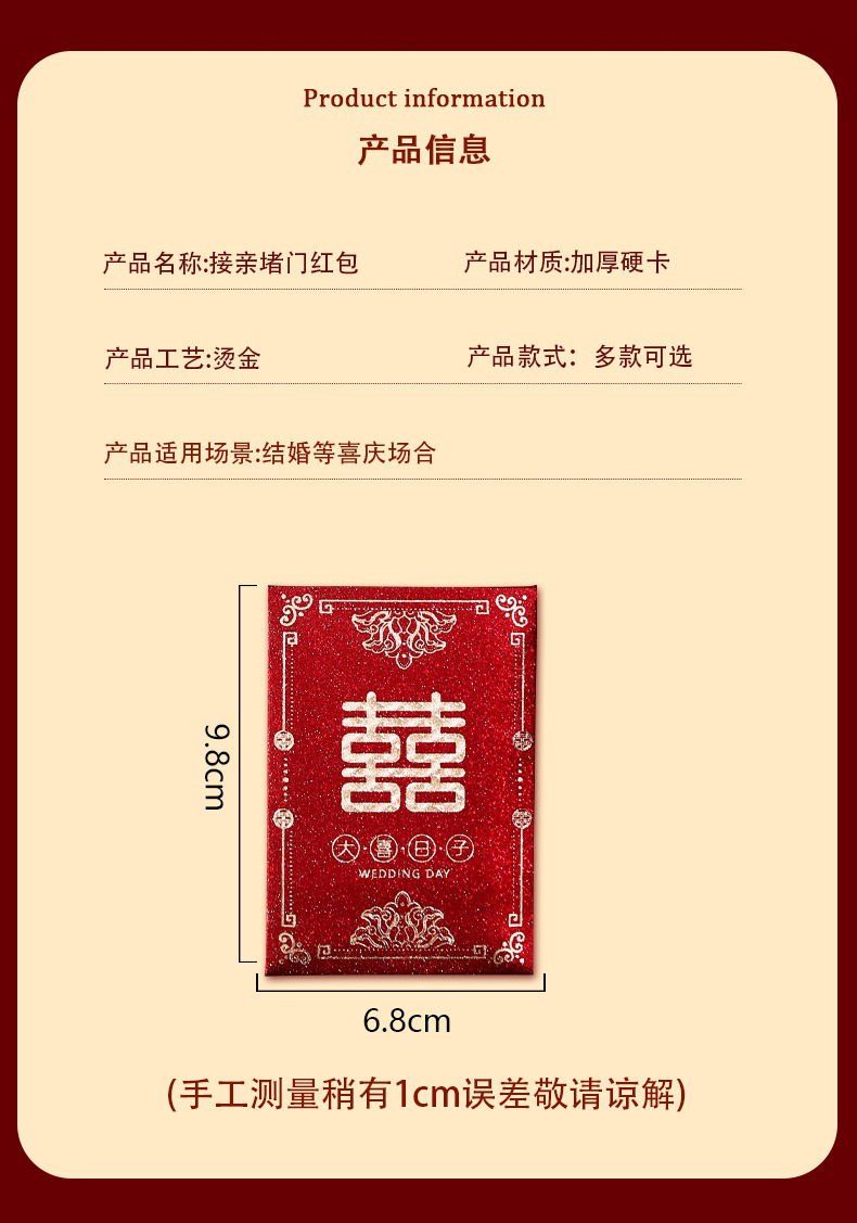 国风烫金接亲堵门红包专用2025新款小号结婚婚礼喜字加厚利是封