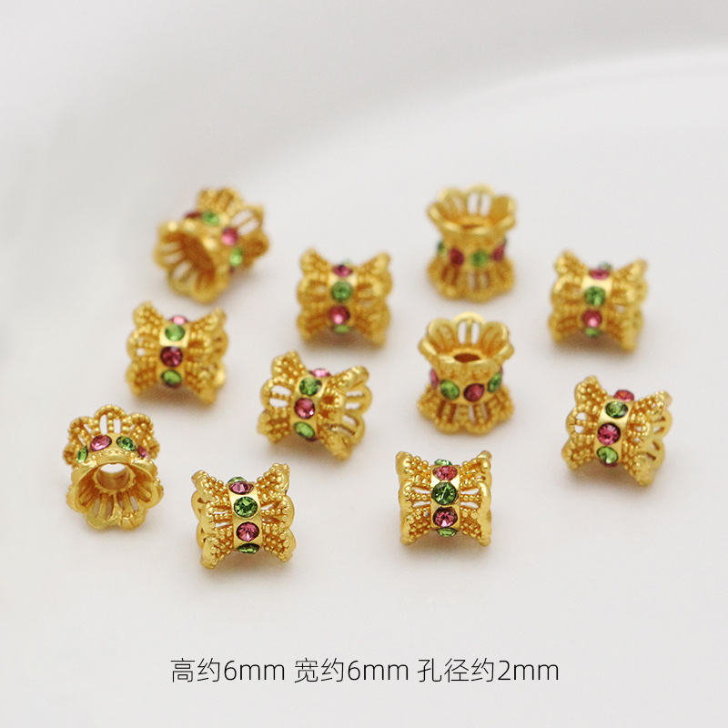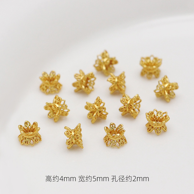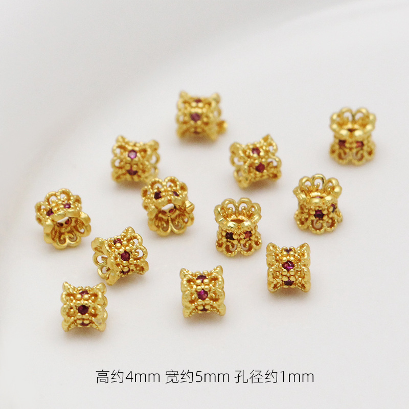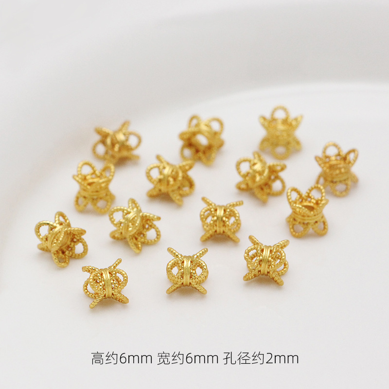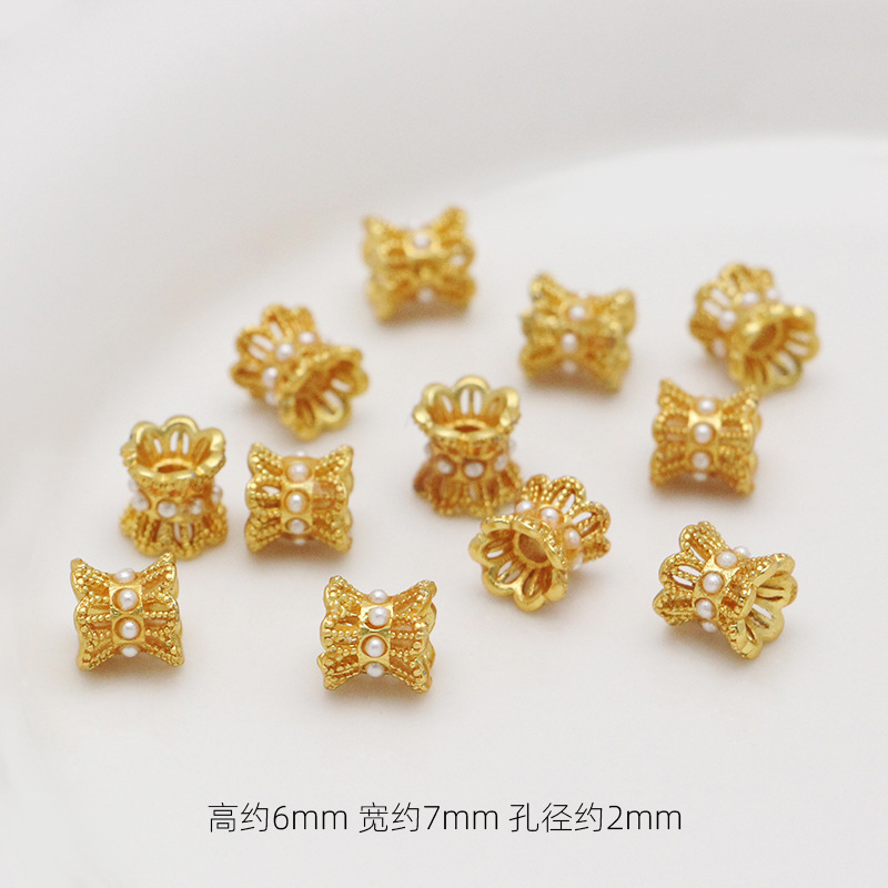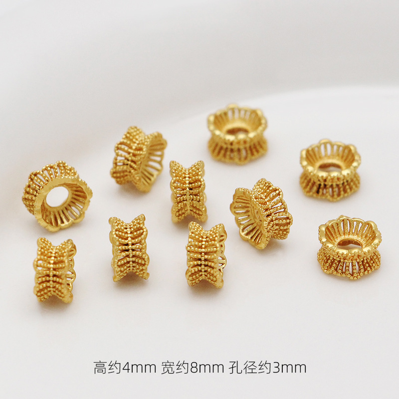 古法金18k保色芝空両面隔珠花托桶珠diyブレスレットネックレス手串手作り材料部品