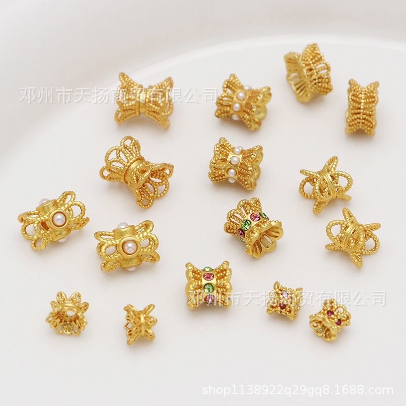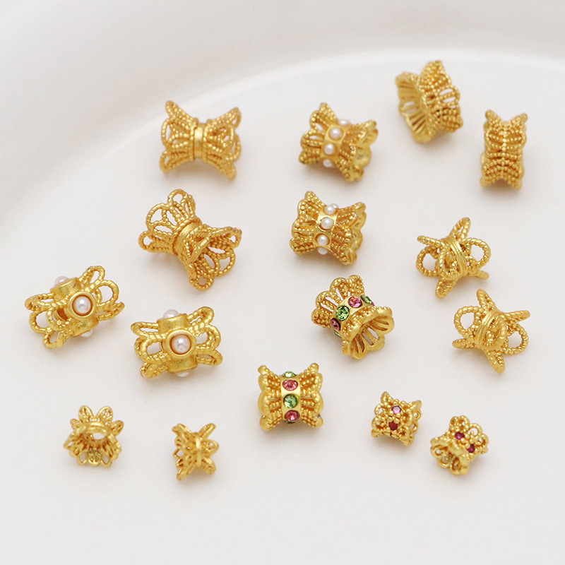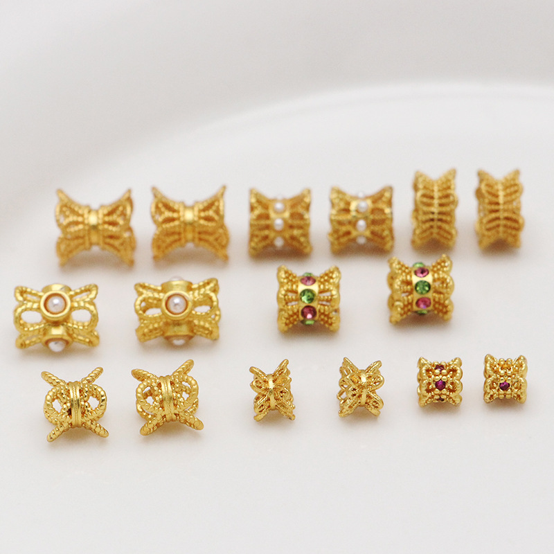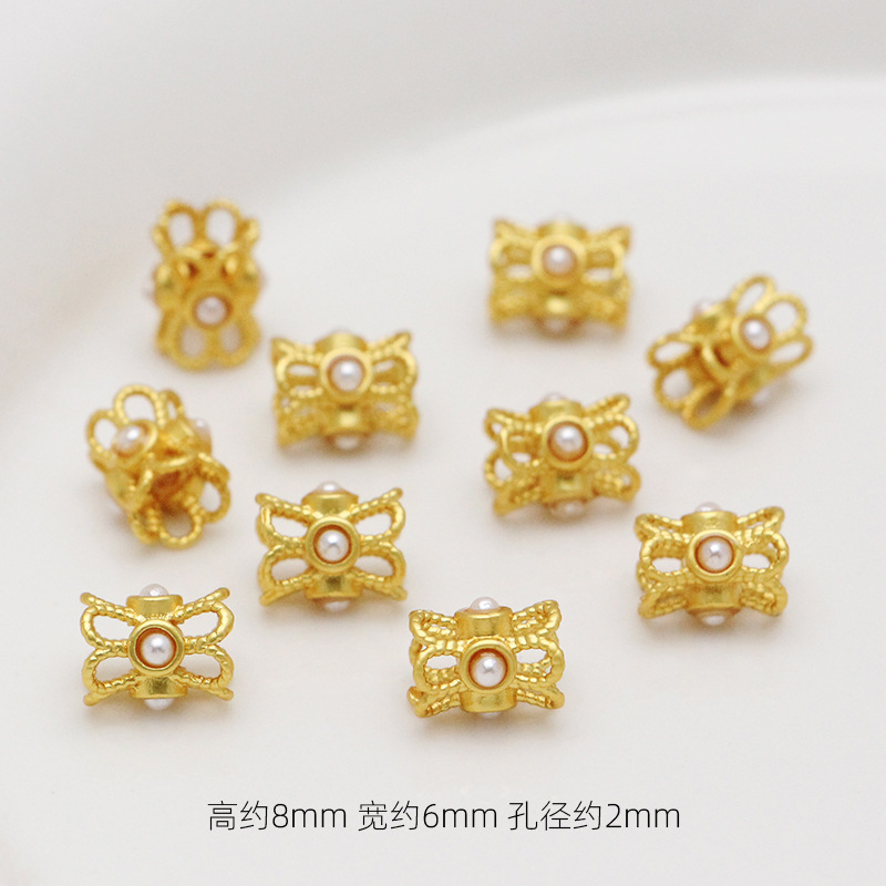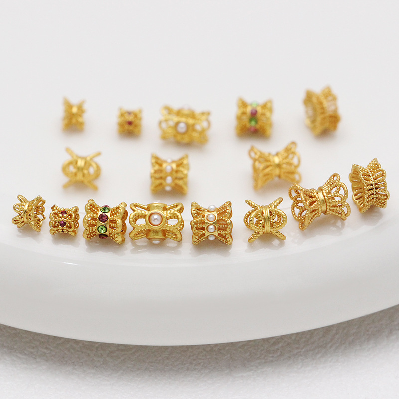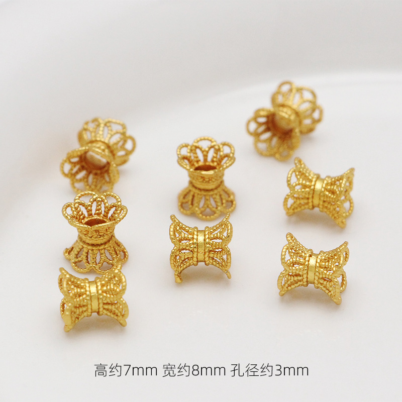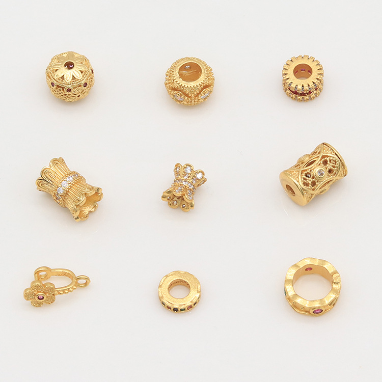 古法金18k保色芝空両面隔珠花托桶珠diyブレスレットネックレス手串手作り材料部品