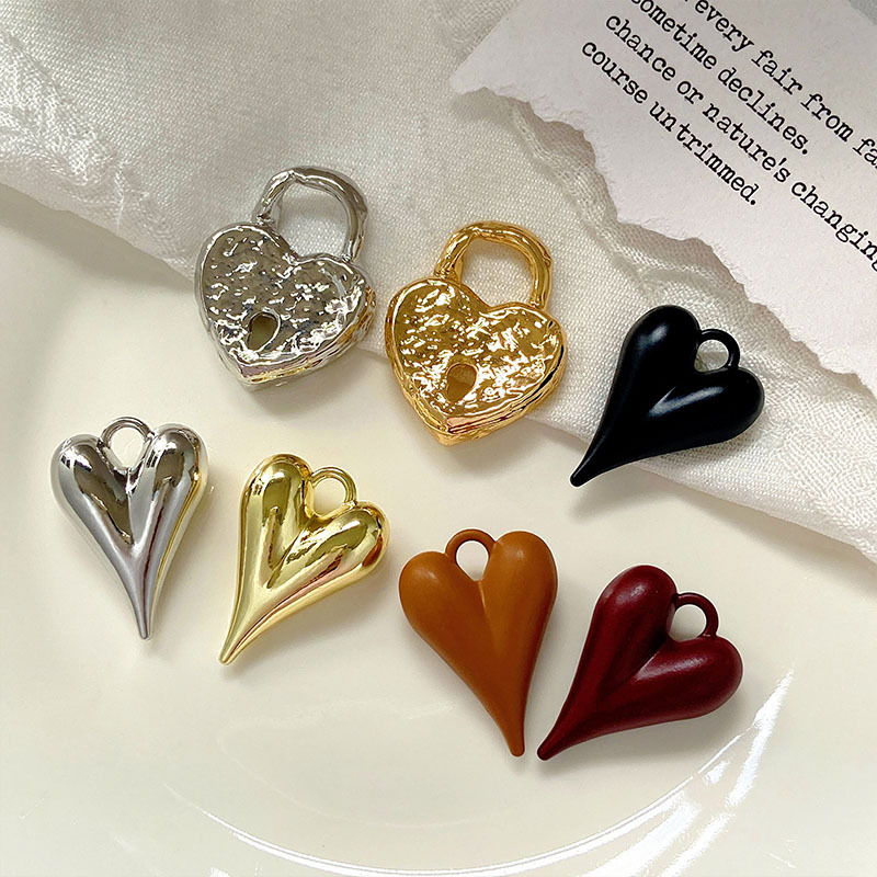 ins个性简约小众大版心形爱心锁吊坠diy秋冬项链挂件耳饰品小配件