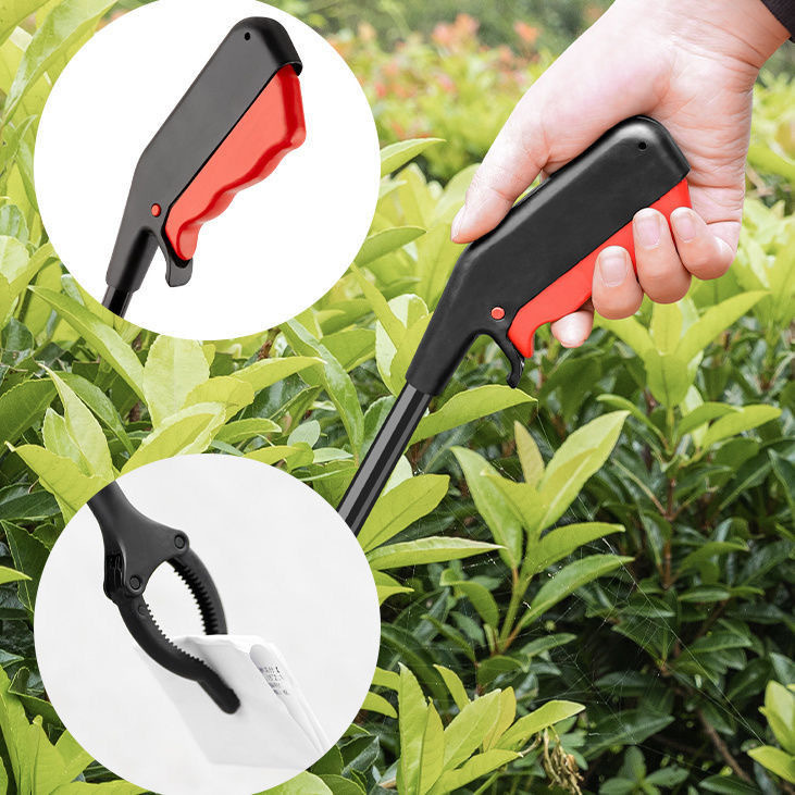 長い柄の鉄製ゴミ拾い鉗子、ゴミ取り器、清掃用多機能携帯ツール