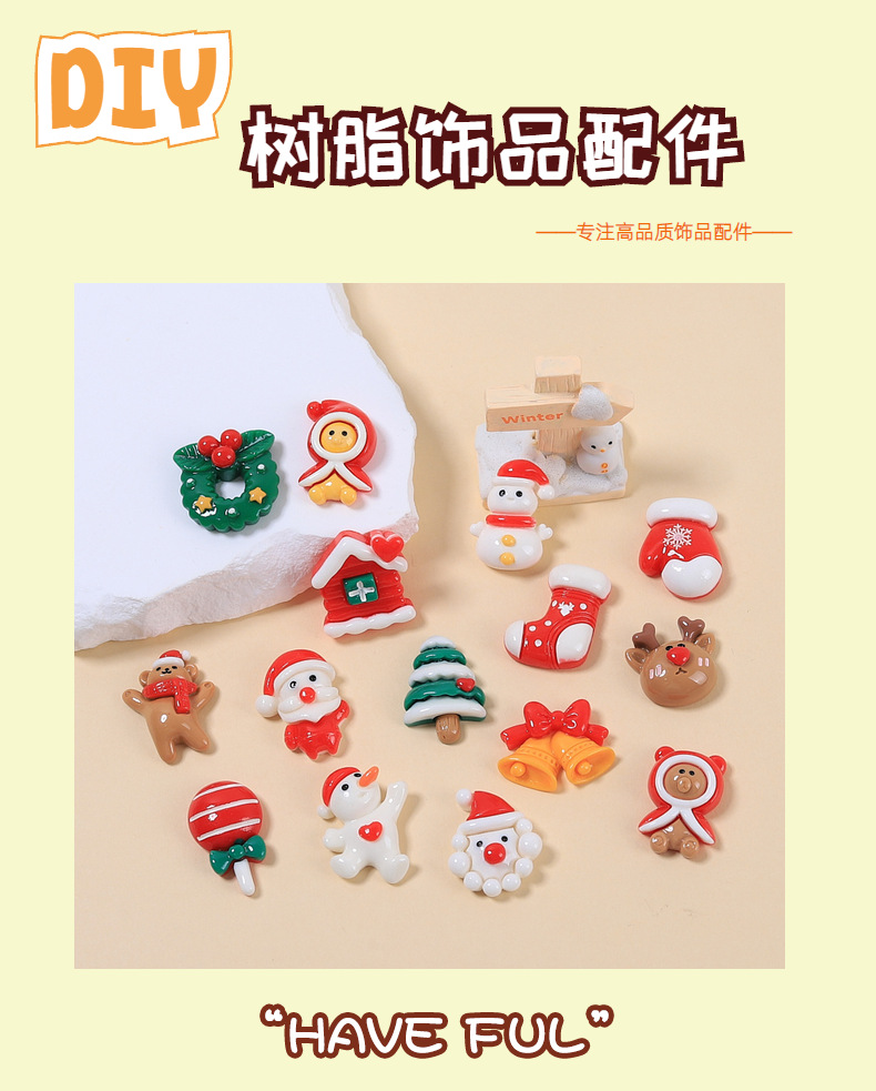欢乐圣诞节卡通手工diy饰品配件奶油胶树脂小配件洞洞鞋扣材料包