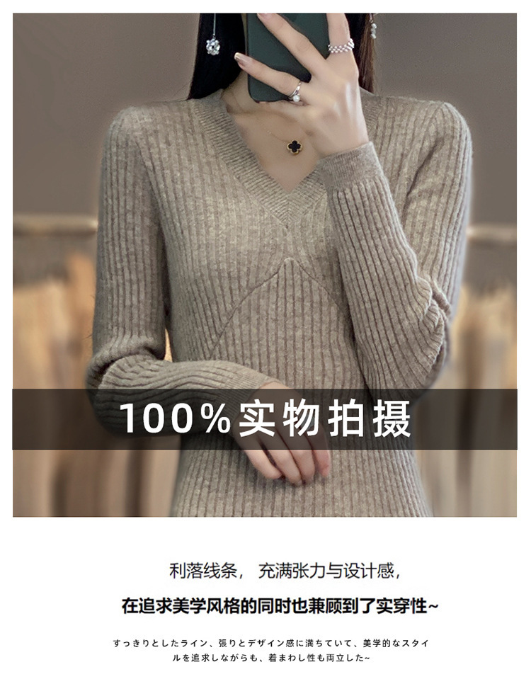2024 秋と冬の新しい韓国スタイルのセーター女性高齢者スリム底シャツファッション多用途メーカー卸売コアスパン糸