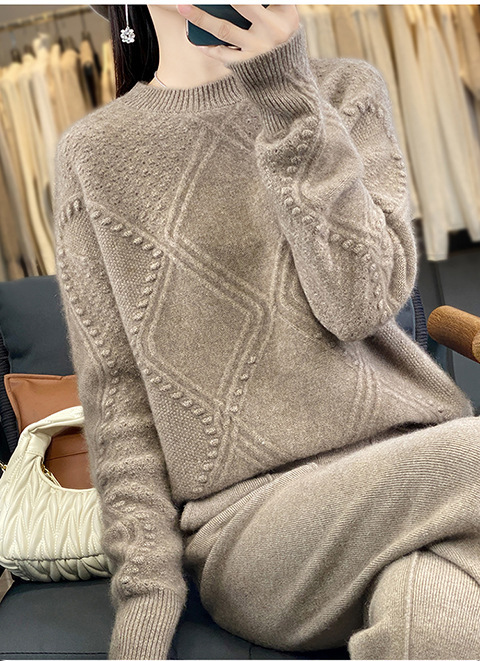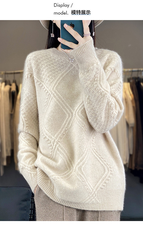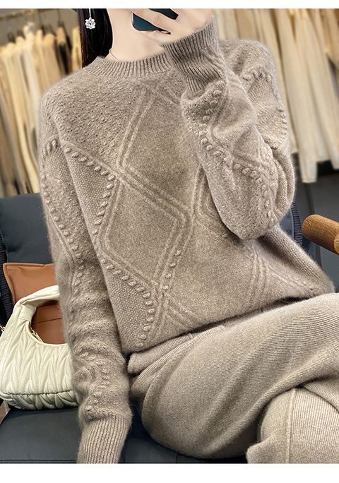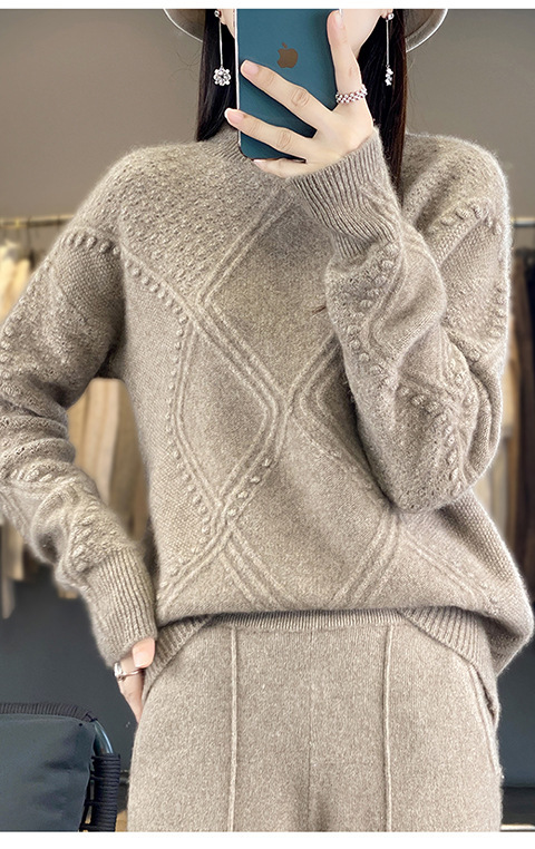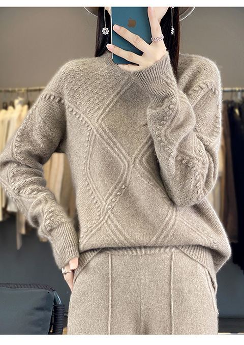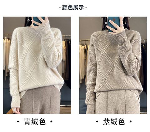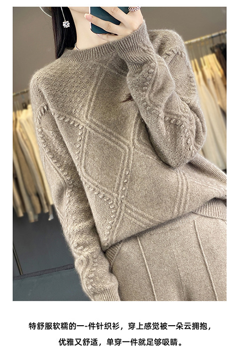卸売 2024 秋と冬の新しいウール女性ハーフハイカラー底シャツセーター無地ニットウェア婦人服プラスサイズ