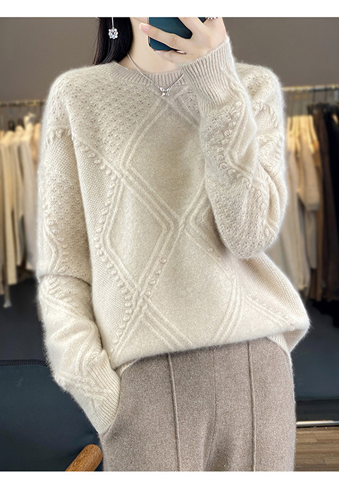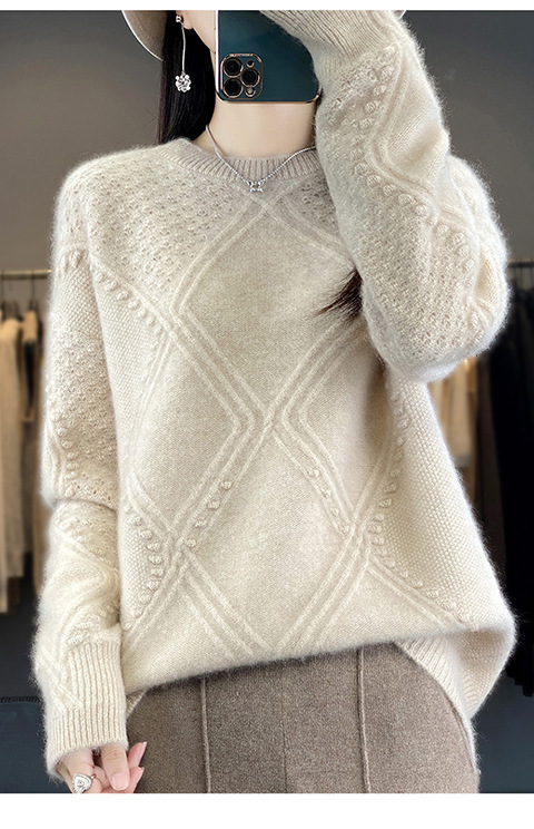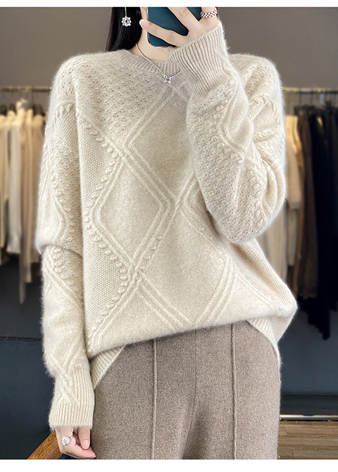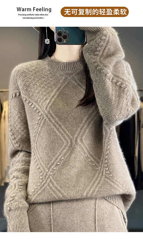 100% ウールのセーターの女性秋冬の新型の厚い丸首のニットの花のセーターのゆったりしている百合のウールの底のシャツの女性