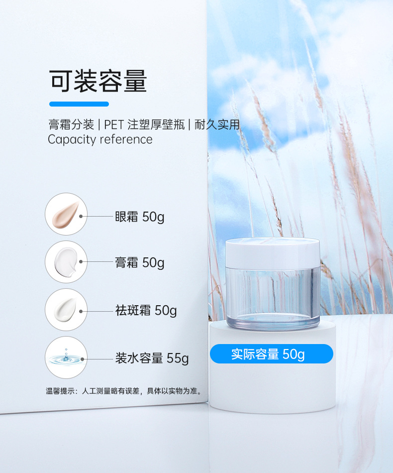 その他の色,透明ボトルホワイトキャップ,透明ボトル黒カバー,透明ボトル50グラム黒キャップ,透明ボトル50グラム白蓋,透明ボトル+艶やかな赤いキャップ,透明ボトル+光沢のあるブルーのキャップ,透明ボトル+サンドブラストマットシルバーキャップ