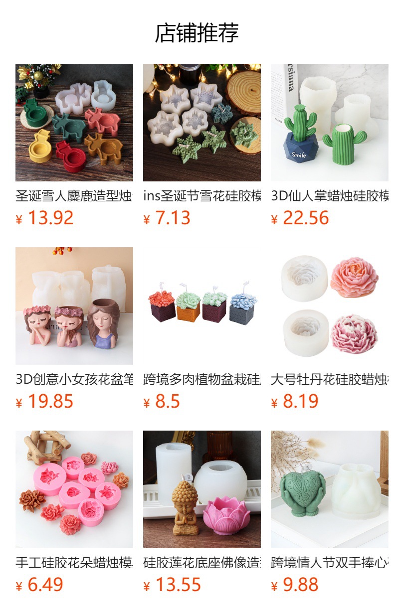 名称:圣诞树蜡烛硅胶模具 尺寸:见下图规格 模具重量:见下图规格