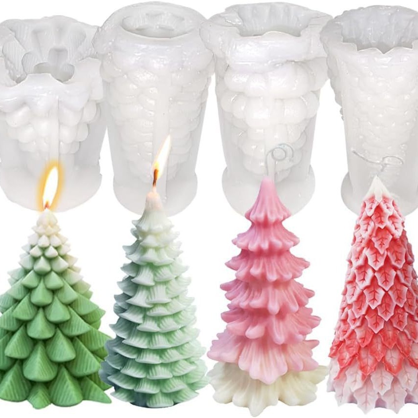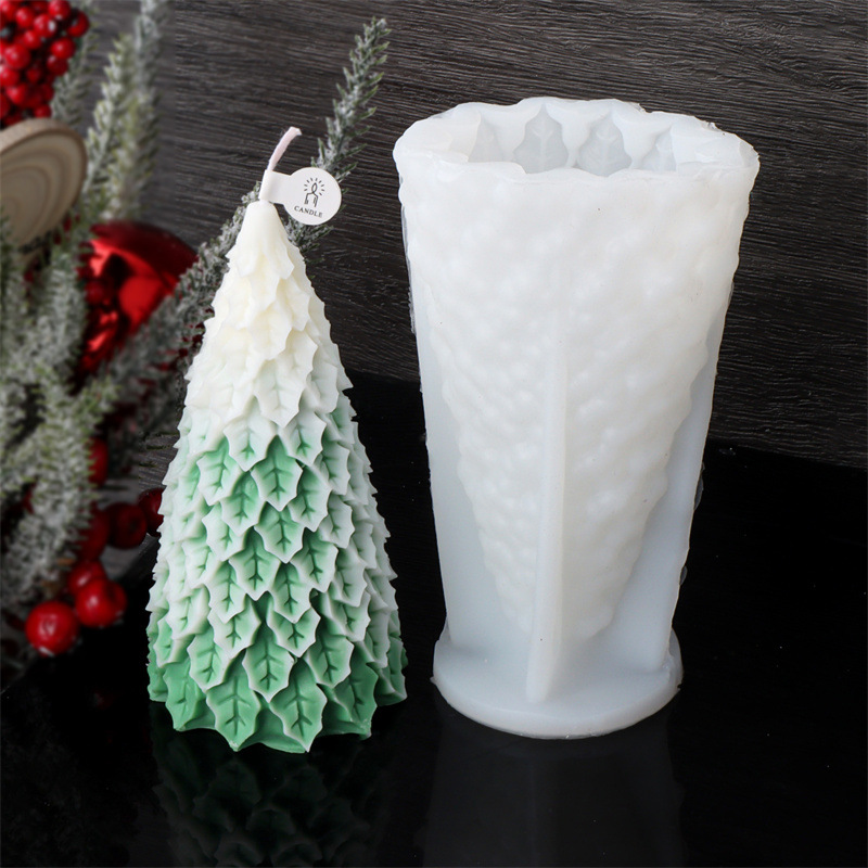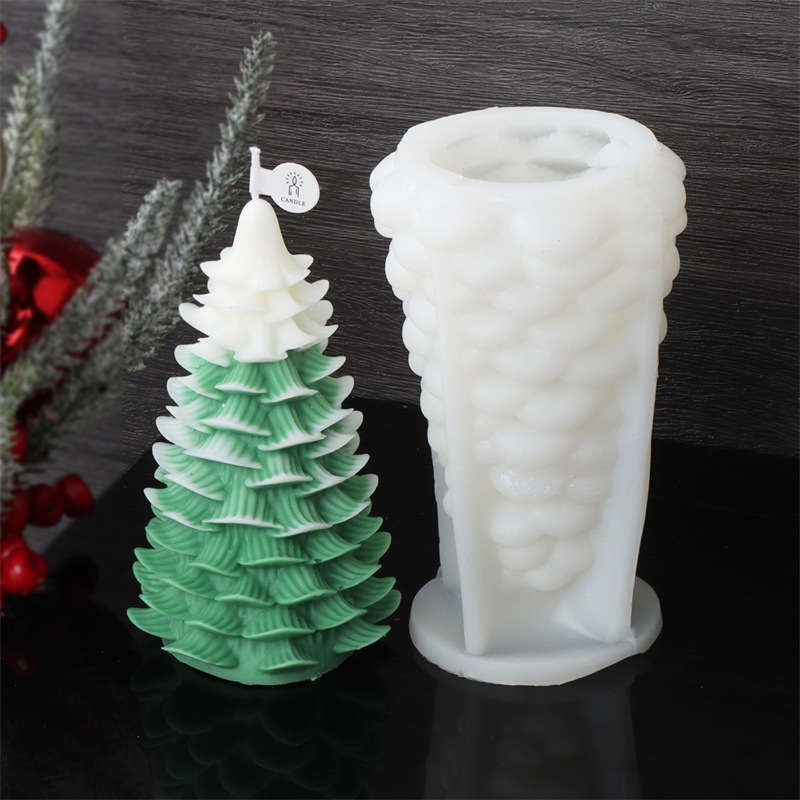 新款跨境圣诞节系列圣诞树硅胶模具DIY松树香薰蜡烛石膏家居装饰