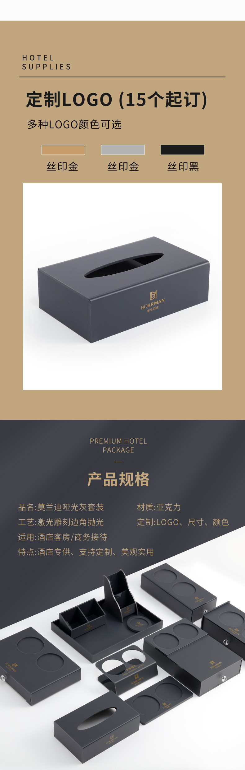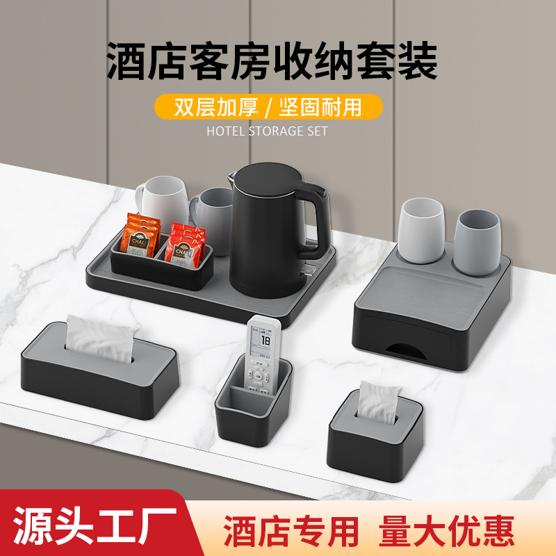 可印logo酒店客用杂件水壶托盘耗品盒宾馆民宿纸巾盒遥控器座收纳