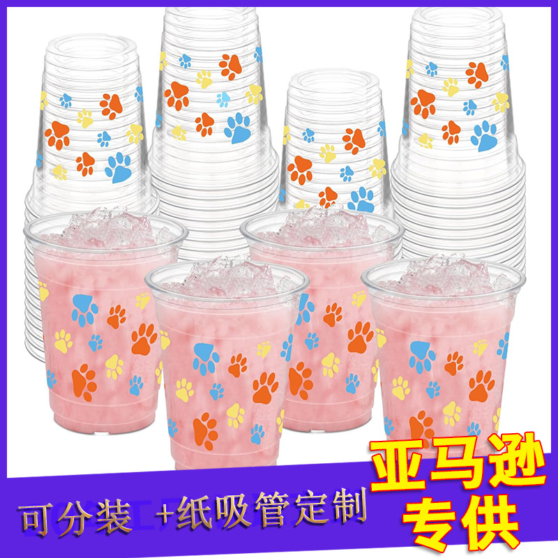 使い捨てpet冷たい飲み物カップレモン茶漏れ防止紙ミルクティー店はテイクアウトコーヒーパッド黒シール紙を梱包する