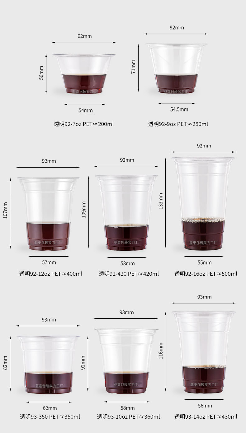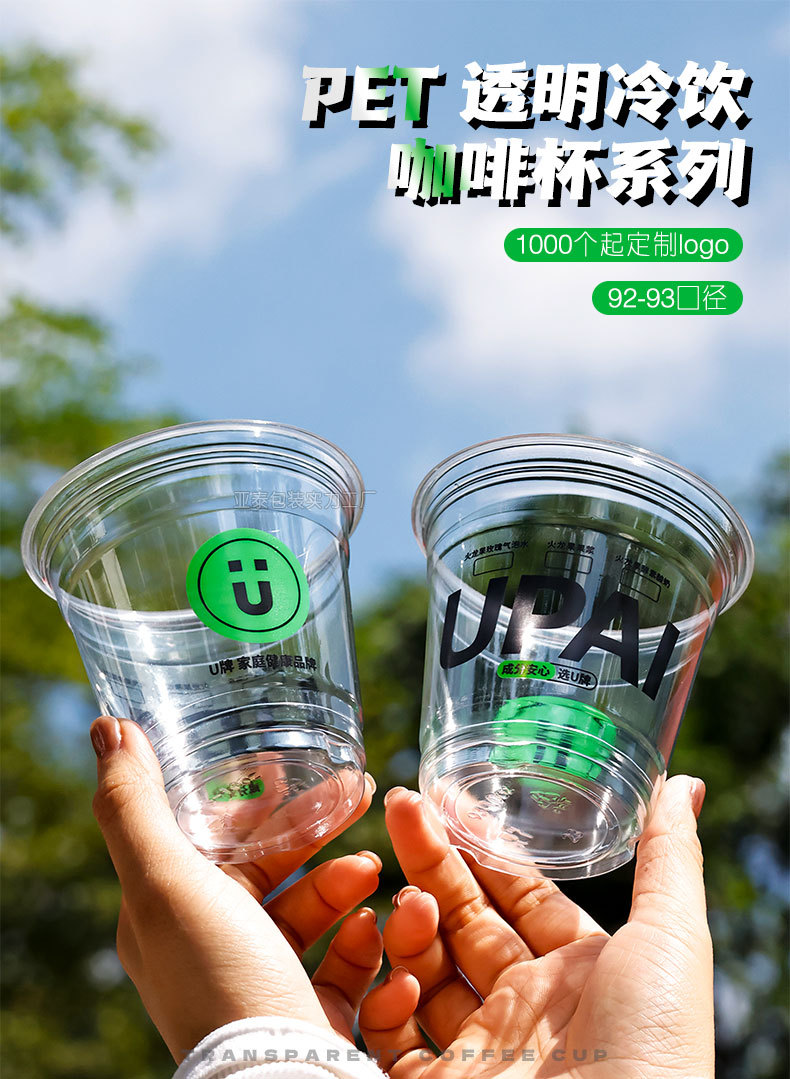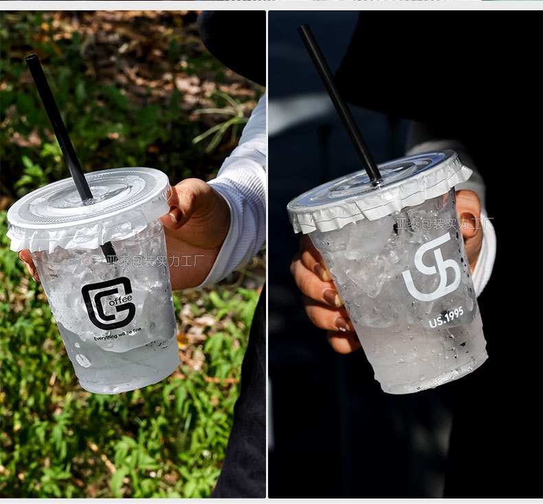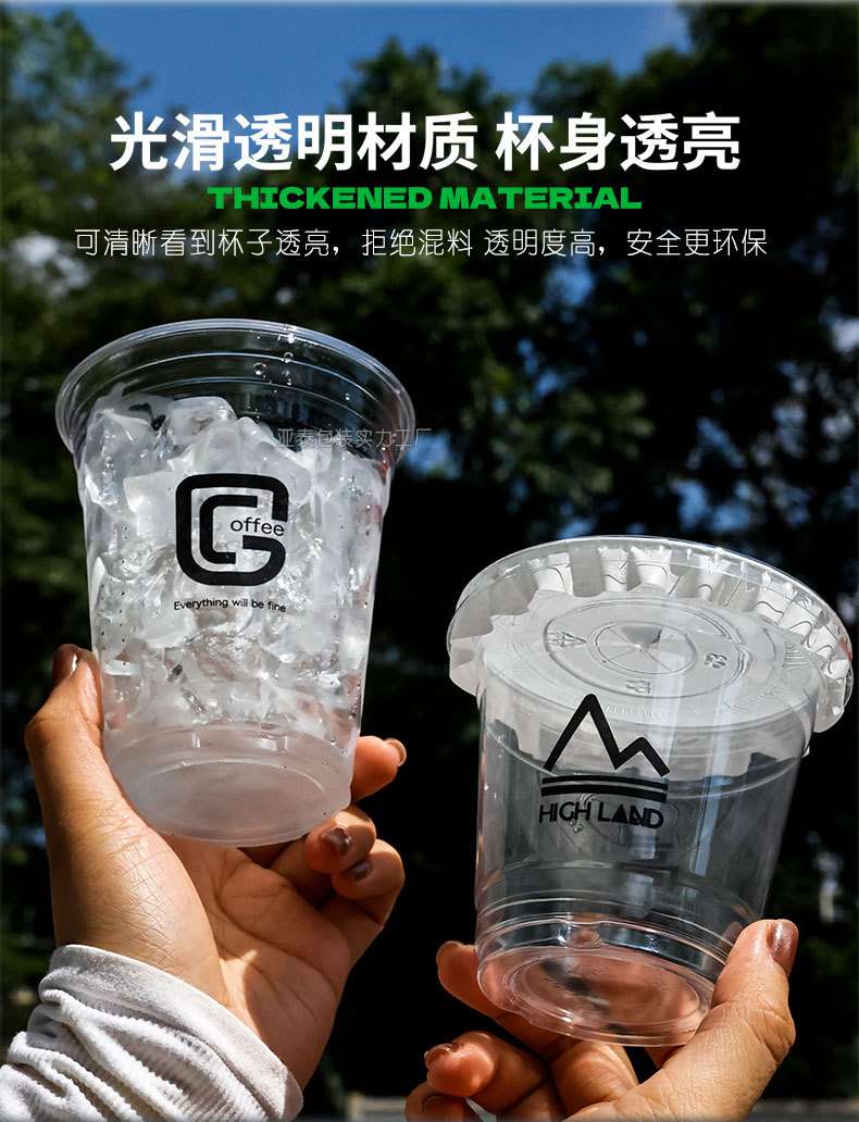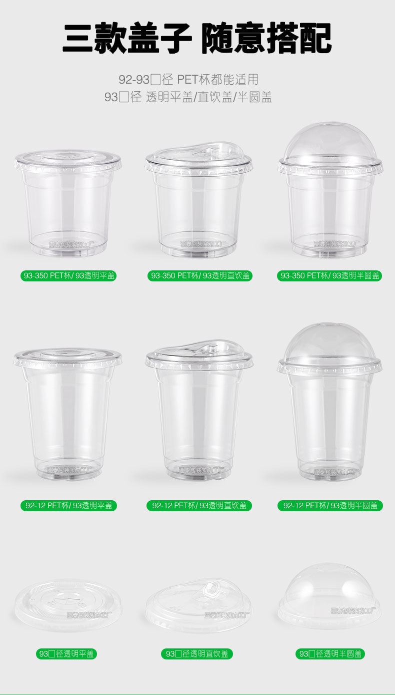 Pet使い捨てコーヒーカップ蓋付き厚さ92口透明プラスチック冷飲カップミルクティーカップジュース飲料カップ
